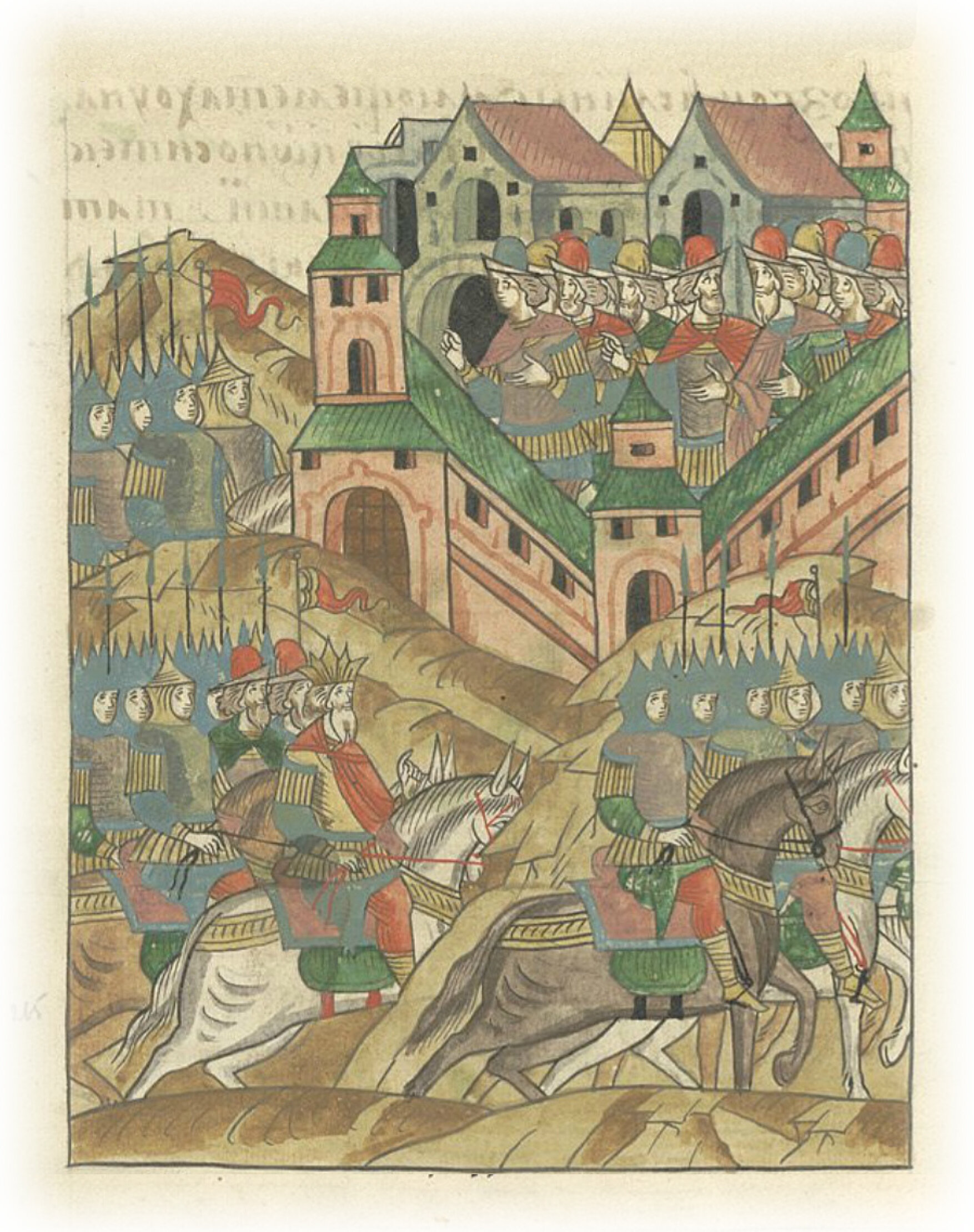 Наутро же сам царь со всею силою своею пришел под город; и приступили к городу со всех сторон, но не стреляя, а только смотря на город.
