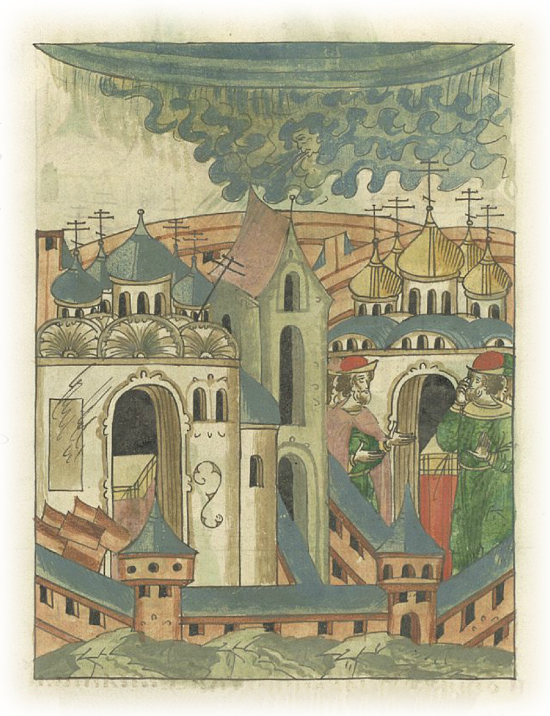 В том же году (месяца) августа в 5 день была туча великая на Москве и страшный гром, и пробило каменную соборную церковь архангела Михаила. (Месяца) августа же 13 была буря великая и сломала крест с той же церкви архангела Михаила.