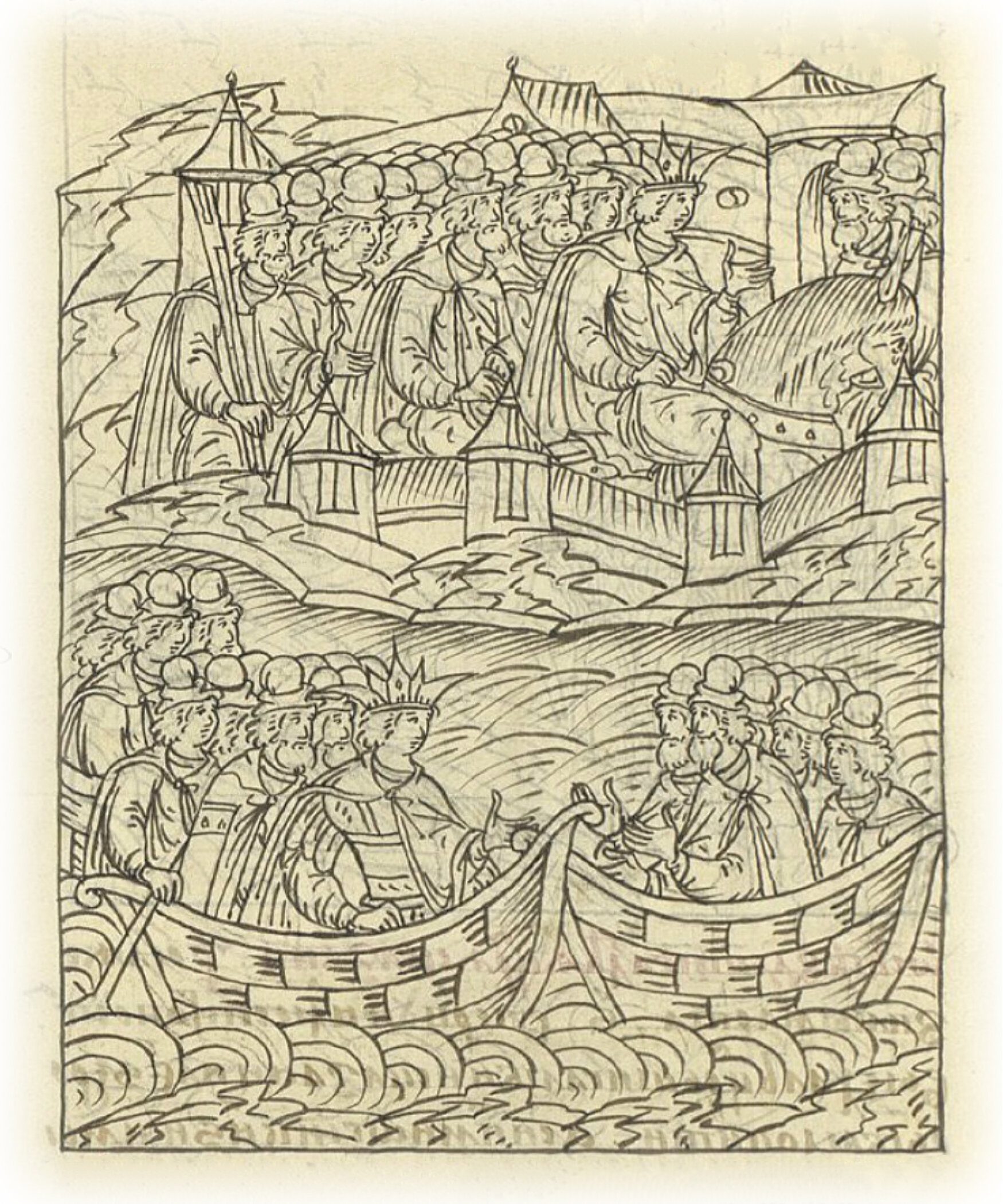 И приехал царь со всеми теми людьми в город Свияжский, а воеводы встретили его на Волге, и вывел с собою царь казанских князей и мурз 84 человека.