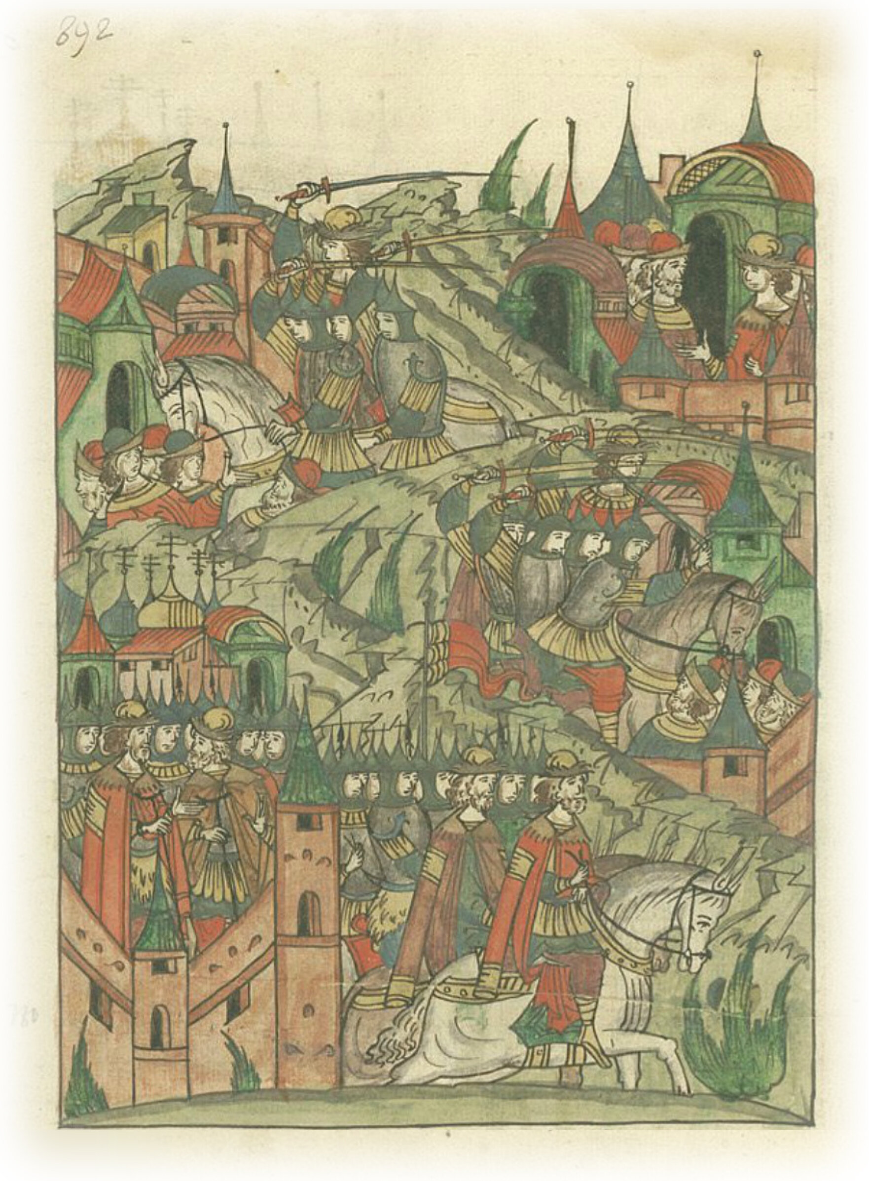 Языки говорят воеводам царя Ивана Васильевича, что магистр окопался большим рвом вокруг города Рындола, бьет из пушек и пищалей и приступает к Рындолу.