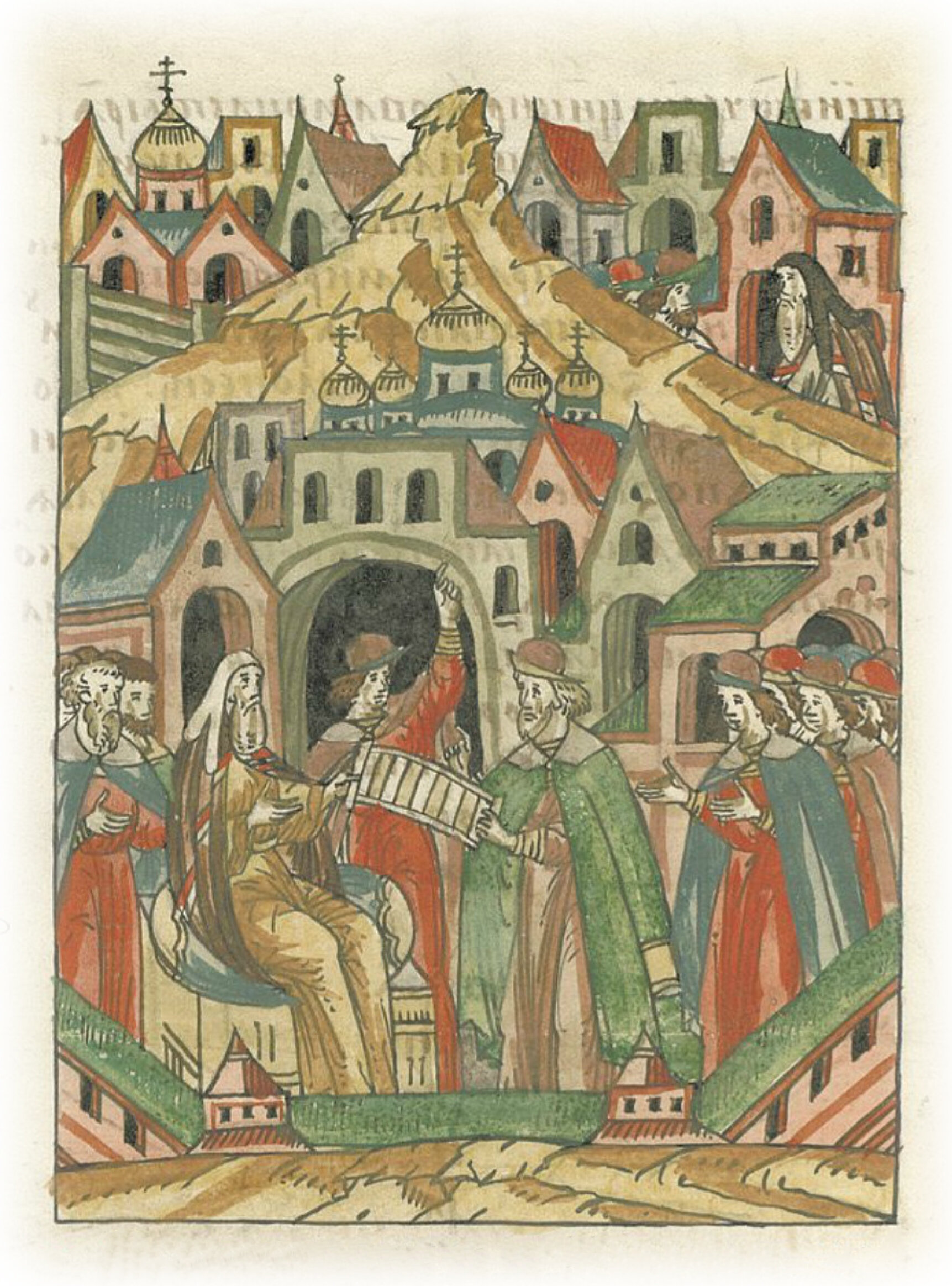 Ругодивские посадники Яким и Захар приезжают в Москву. Воеводы царя Ивана Васильевича Алексей Адашев и Иван Михайлов сообщают им, что государь пожалует их, если сдадут его воеводам помимо Ругодива Вышгород.