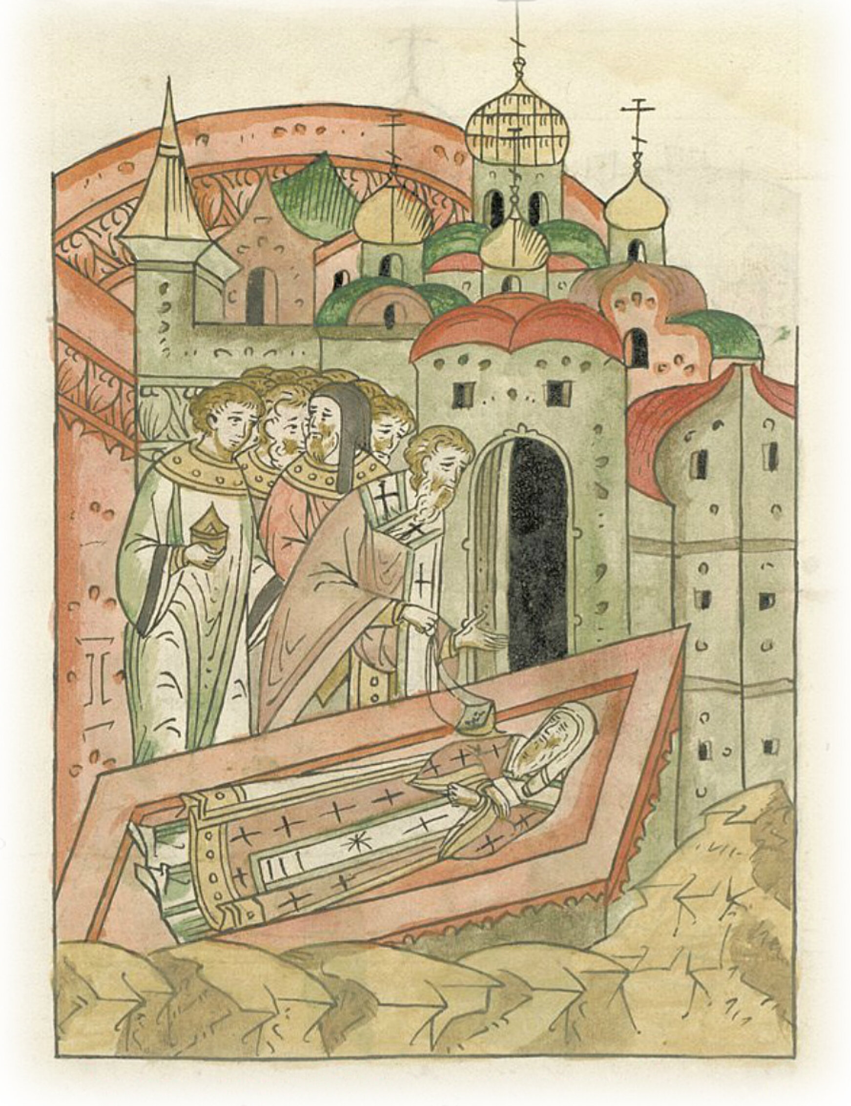 Кончина митрополита Геронтия и его похороны в Москве в соборной церкви Успения Пречистой Богородицы на северной стороне.