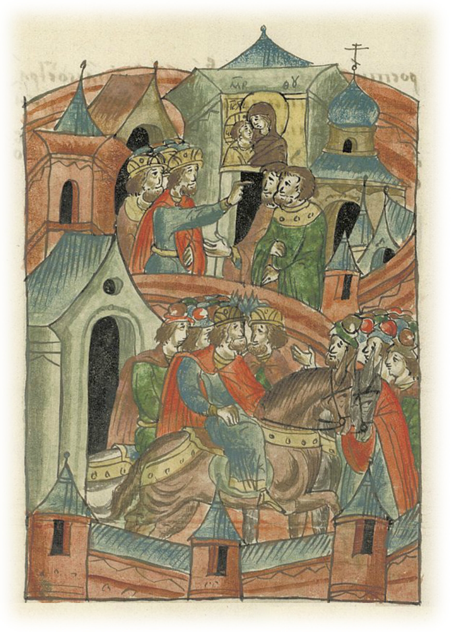 Князь Михалко Юрьевич со своим братом Всеволодом Юрьевичем въезжает во Владимир.