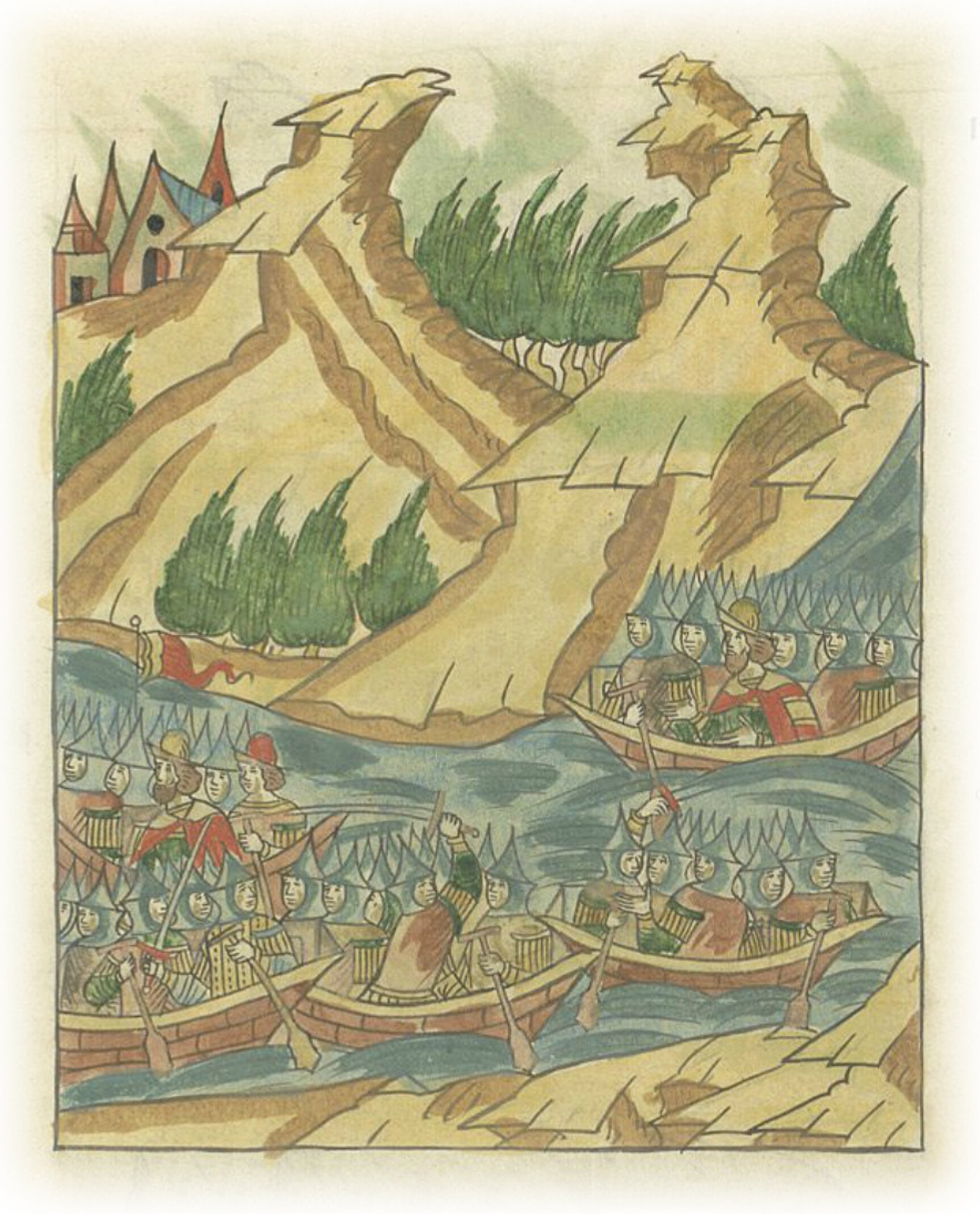 Вятчане пробиваются сквозь перегородившие Волгу суда татар и уходят.
