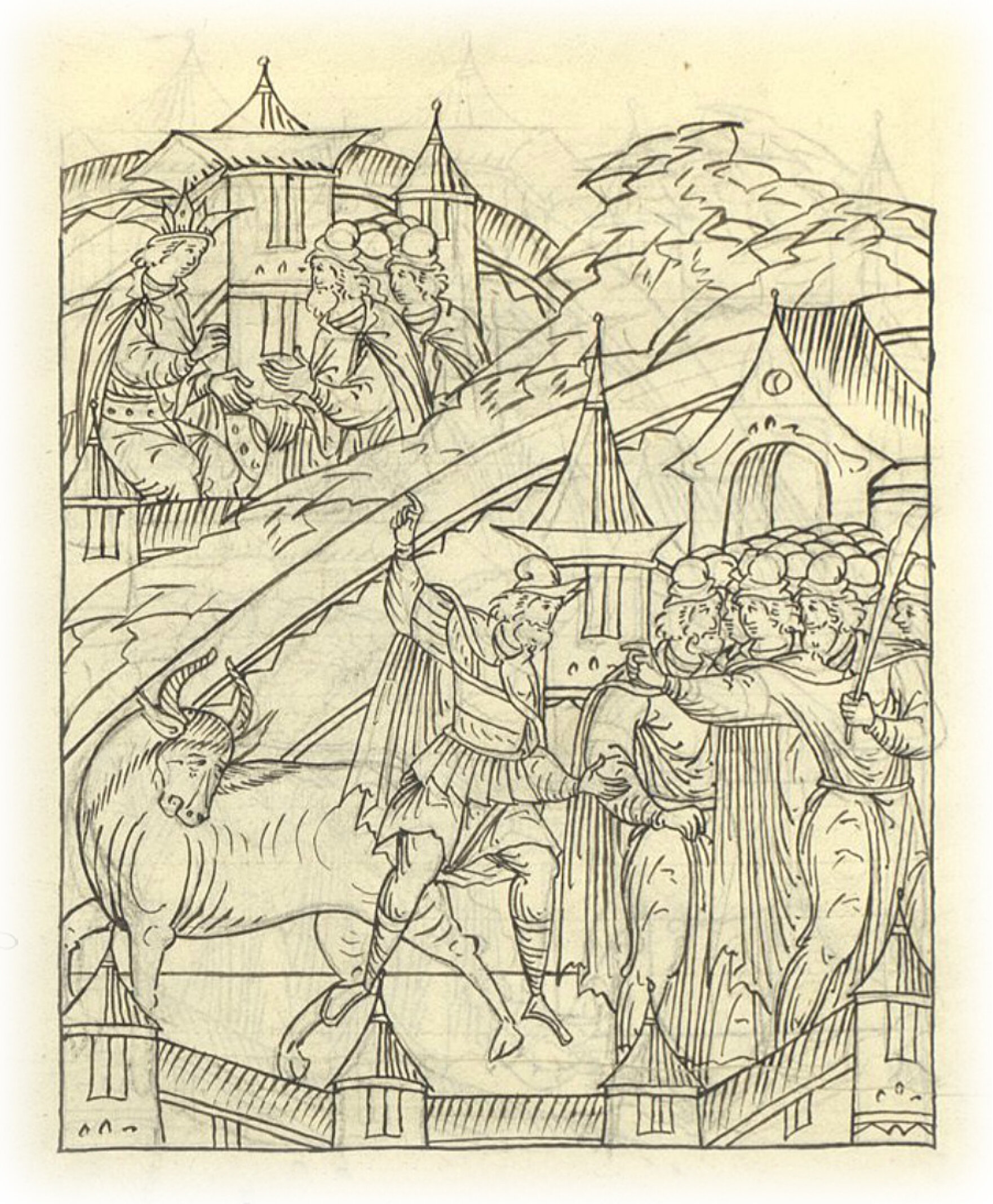 Ругодивские посадники Яким и Захар приезжают в Москву. Воеводы царя Ивана Васильевича Алексей Адашев и Иван Михайлов сообщают им, что государь пожалует их, если сдадут его воеводам помимо Ругодива Вышгород.