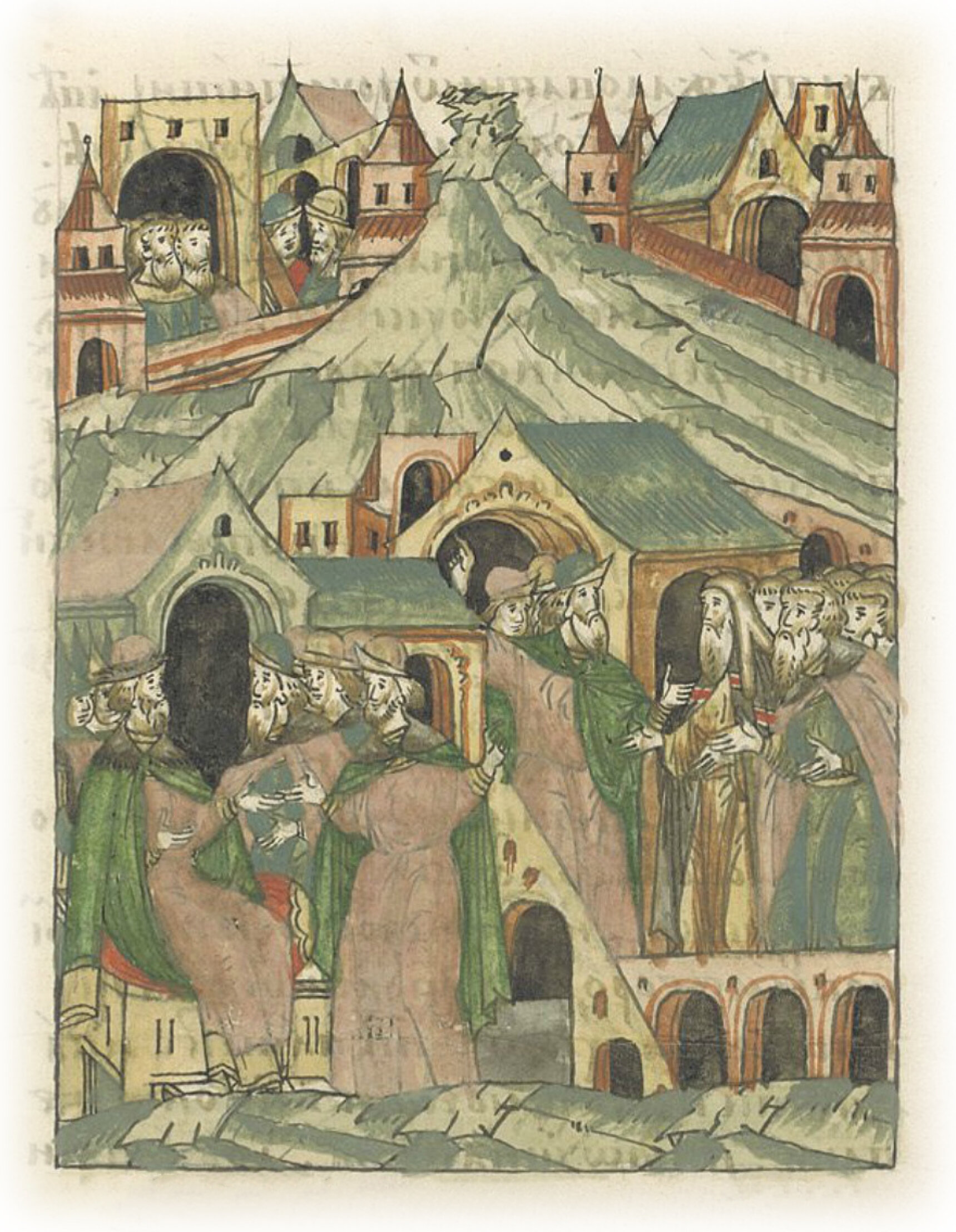 Потом Иван Борисович начал говорить им: «Князь великий тебе, владыке, богомольцу своему, и посадникам, и зажиточным горожанам так говорит: били челом мне, великому князю, о том, чтобы я неприязнь свою к своей отчине отложил; и вы представили речи о боярах новгородских, на которых я перед этим разгневался, и что мне бы тех пожаловать, отпустить; а известно тебе, богомольцу нашему владыке, да и вам, посадникам и зажиточным, и всему Новгороду, что о тех боярах били челом мне, великому князю, вся моя отчина Великий Новгород, что от них много причинилось лиха отчине нашей, Великому Новгороду и волостям его – наезды и грабежи, когда имущество людское грабили и кровь христианскую проливали; а ты, Лука Исаков, сам тогда был в истцах, да и ты, Григорий Киприанов с Никитиной улицы; и я, князь великий, расследовал с тобою же, своим богомольцем, да и с вами, посадниками, и отчиною своею Великим Новгородом, что много зла причиняется от них отчине нашей, и казнить их хотел; но ведь ты же, владыка, и вы, отчина наша, били мне челом, и я казнить их отказался; и вы нынче о тех виновных речи представляете; и если не по хорошему бьете нам челом, и нам как вас жаловать?»