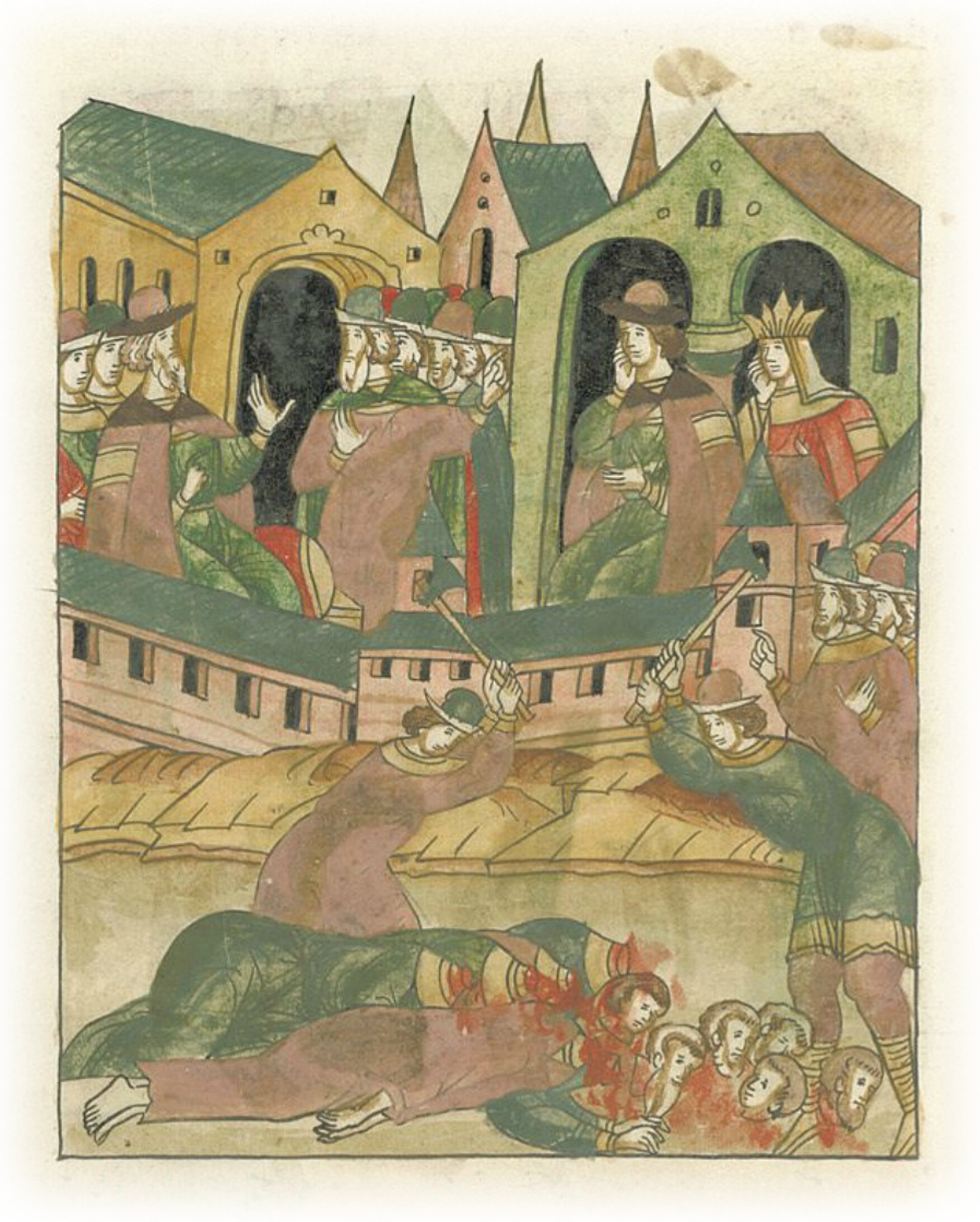 Великий князь Иван Васильевич гневается на своего сына князя Василия и на свою жену великую княгиню Софью, и в гневе велит казнить боярских детей.
