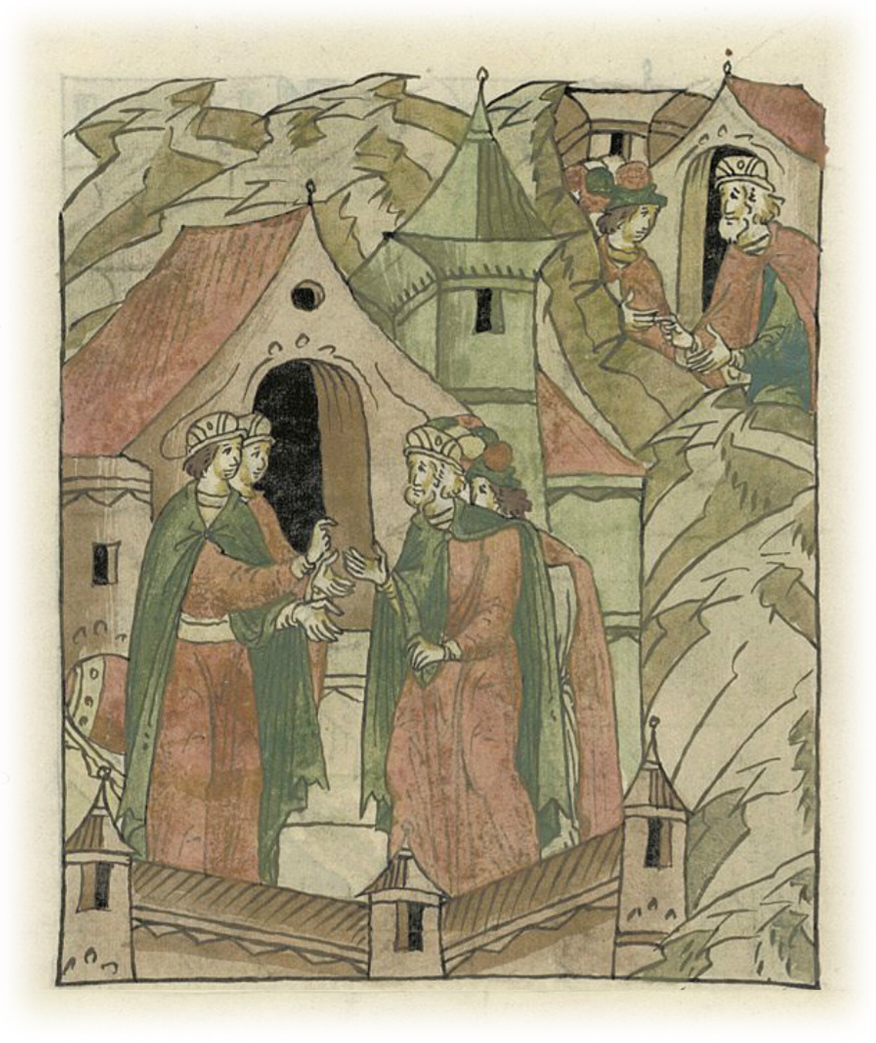 Ругодивские посадники Яким и Захар приезжают в Москву. Воеводы царя Ивана Васильевича Алексей Адашев и Иван Михайлов сообщают им, что государь пожалует их, если сдадут его воеводам помимо Ругодива Вышгород.