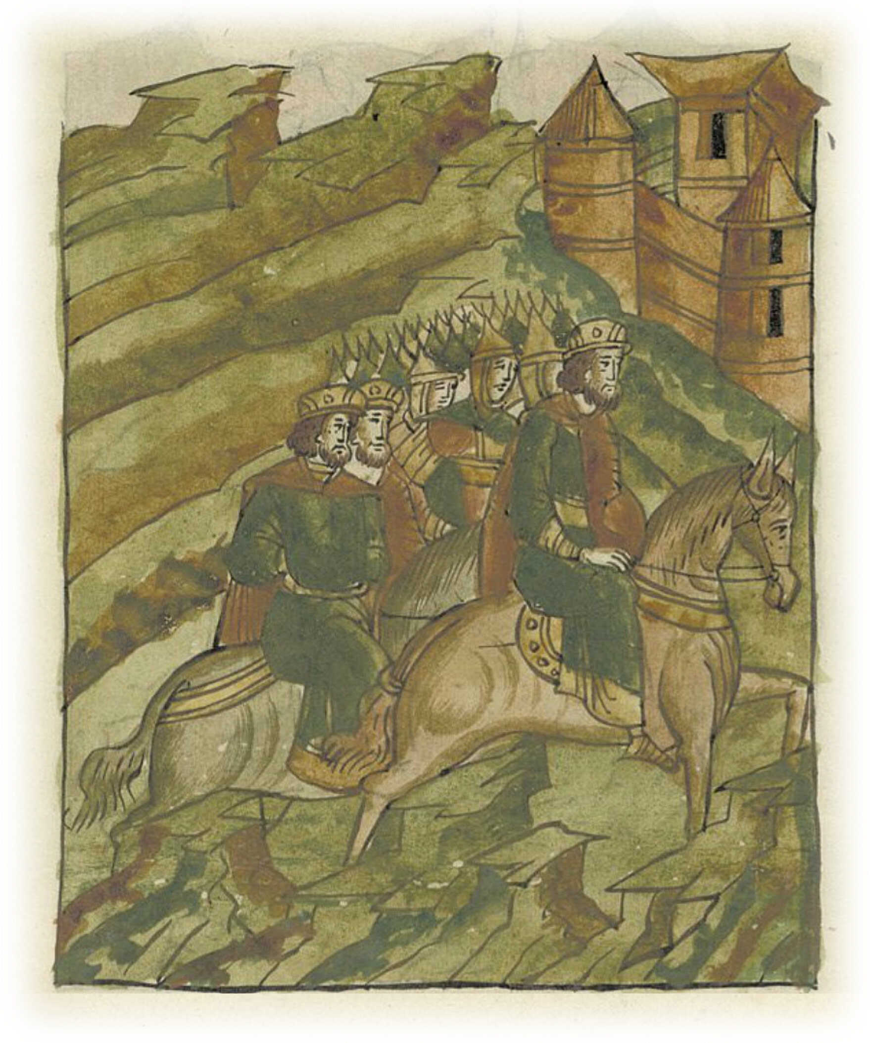 Воеводы царя Ивана Васильевича, разделившись, идут в погоню за царем Емгурчеем.