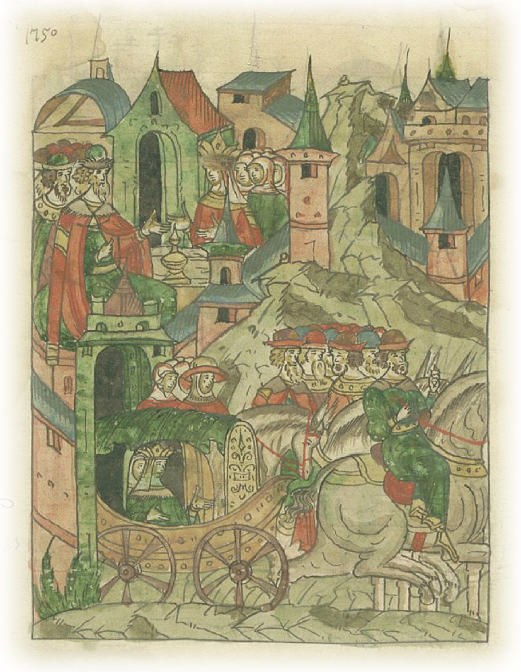 Княгиня Анастасия, жена князя Юрия Дмитриевича, возвращается из Москвы от своего отца.