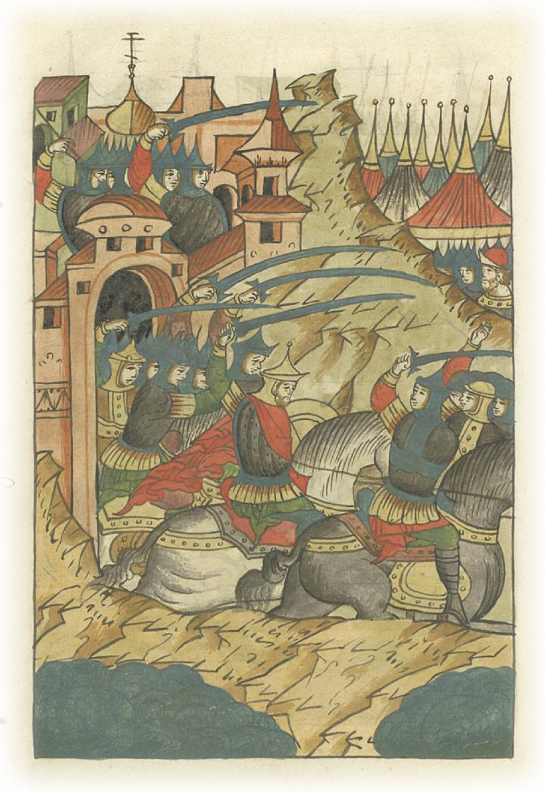 Языки говорят воеводам царя Ивана Васильевича, что магистр окопался большим рвом вокруг города Рындола, бьет из пушек и пищалей и приступает к Рындолу.