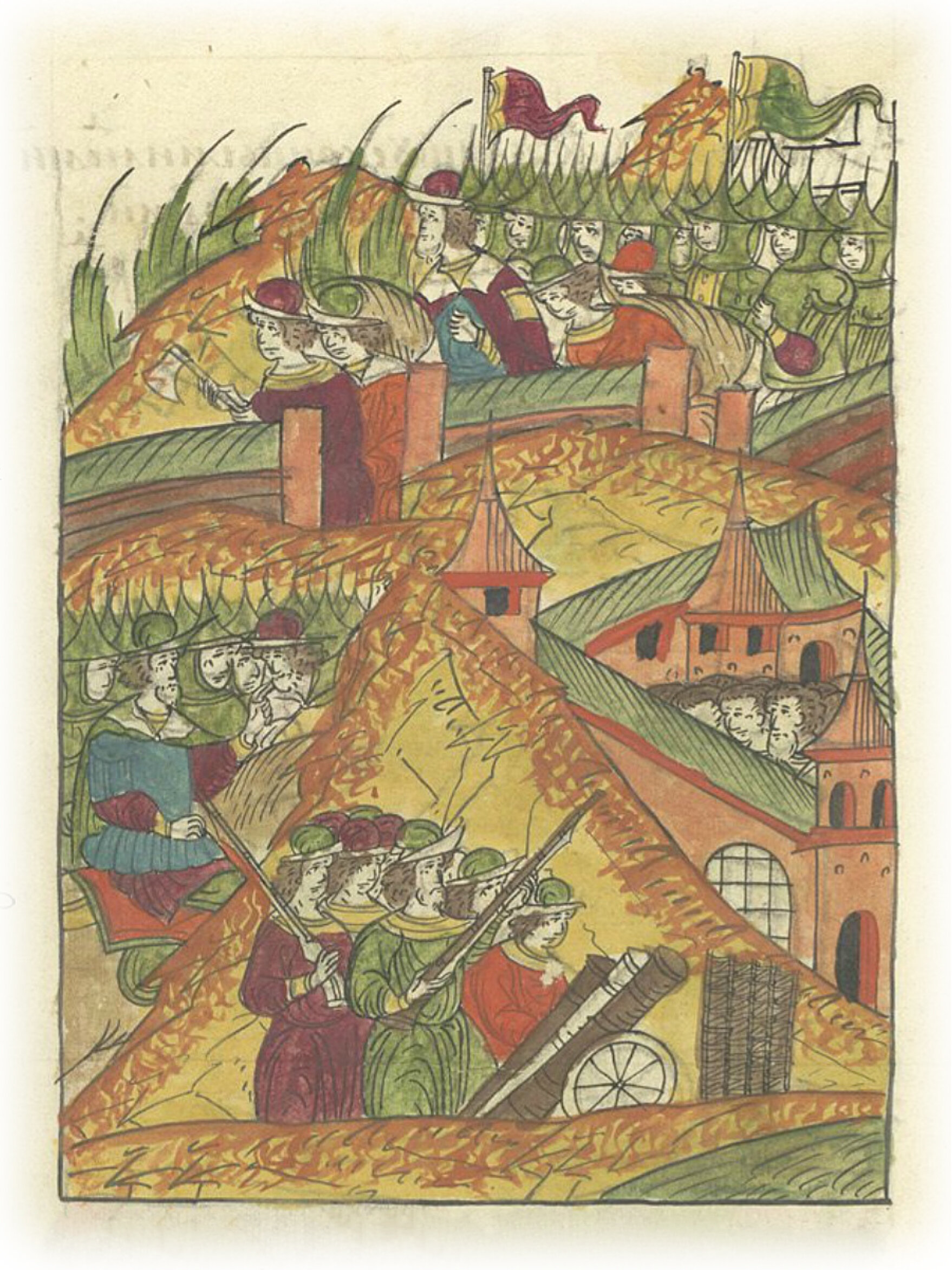 Языки говорят воеводам царя Ивана Васильевича, что магистр окопался большим рвом вокруг города Рындола, бьет из пушек и пищалей и приступает к Рындолу.