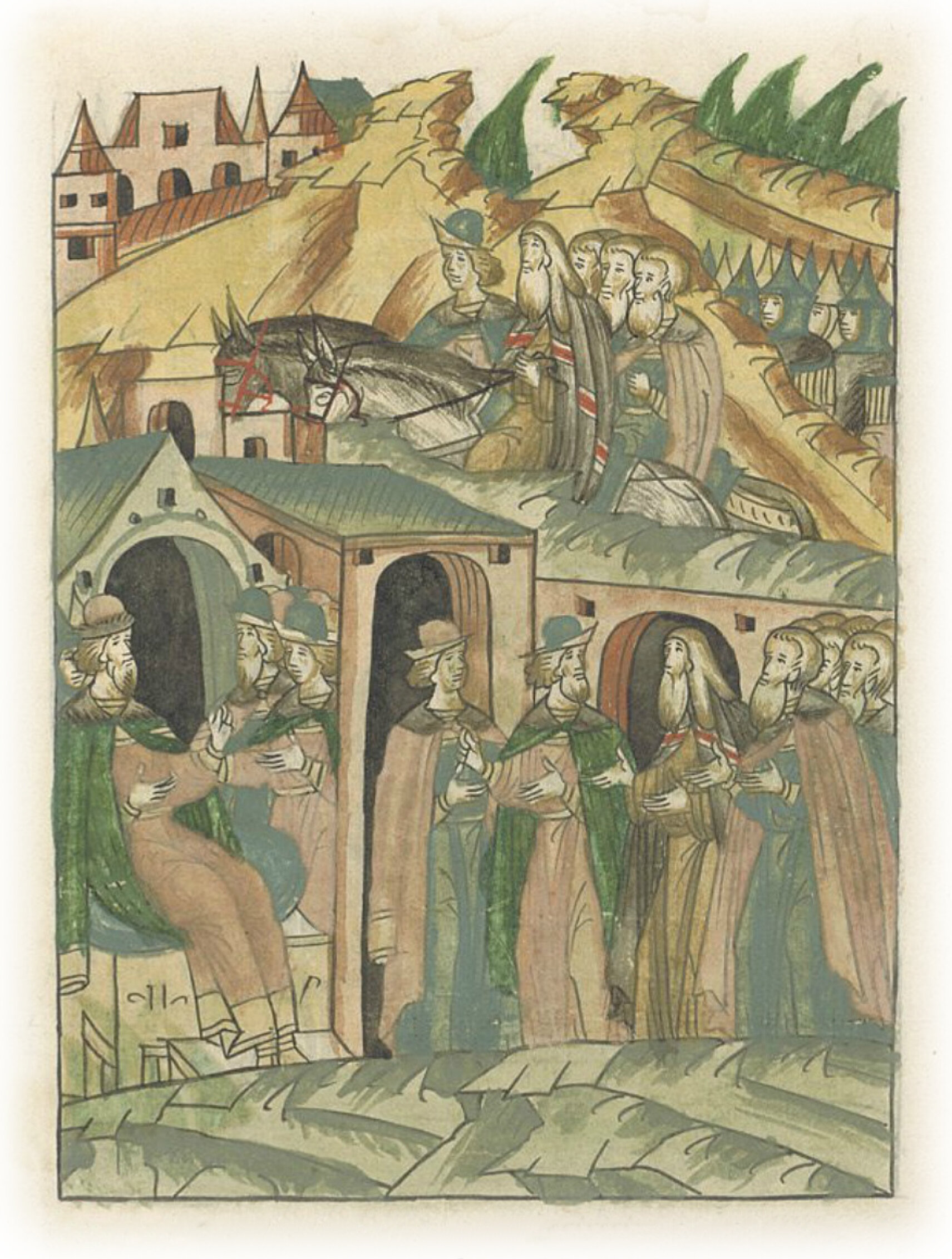 Великий князь Иван Васильевич велит своему приставу Руну проводить владыку Феофила и новгородцев.