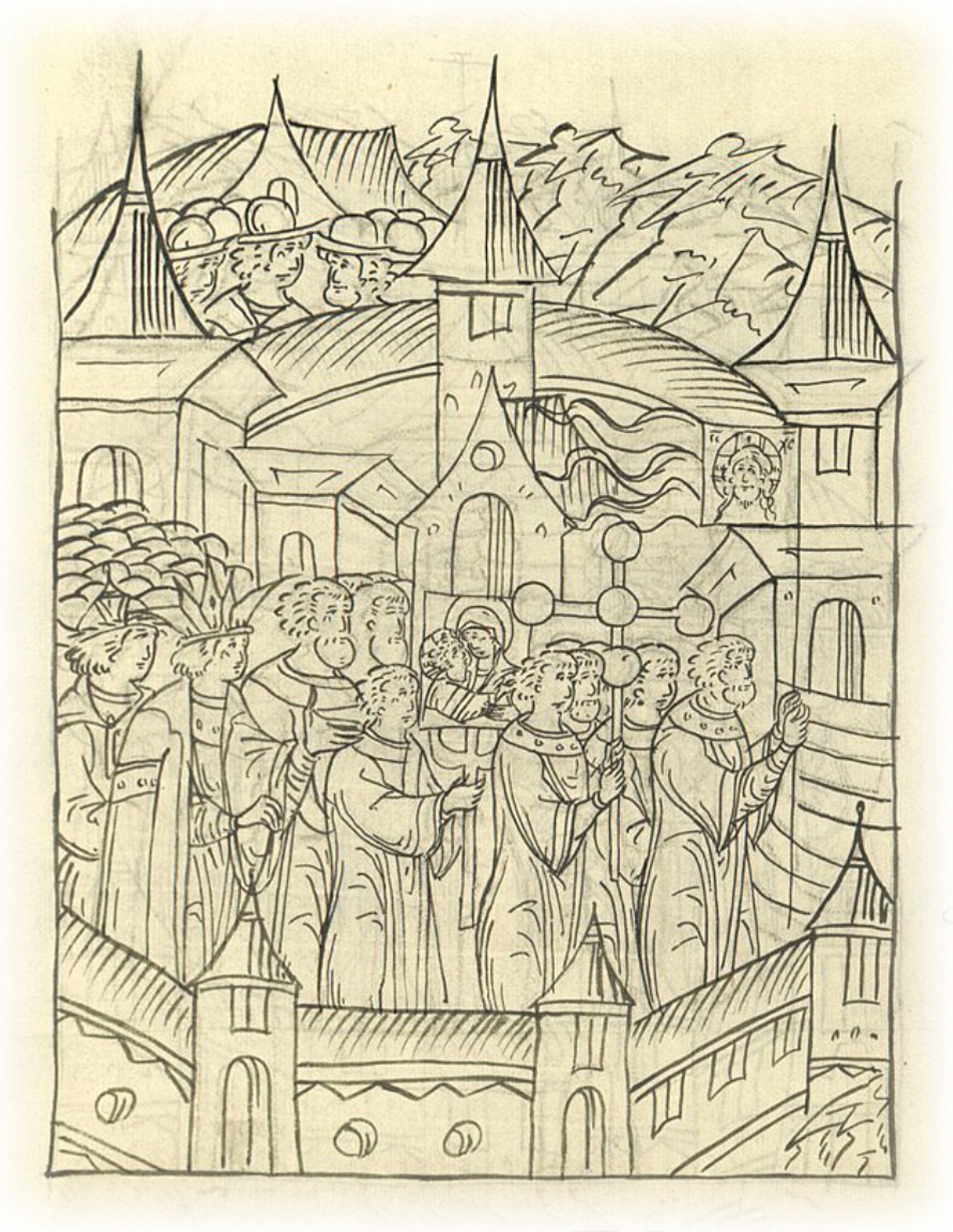 И пошел государь царь с крестами по стенам городским, и освятил град во имя святой живоначальной Троицы, Отца и Сына и святого Духа, и пречистой его Богоматери и великих чудотворцев.