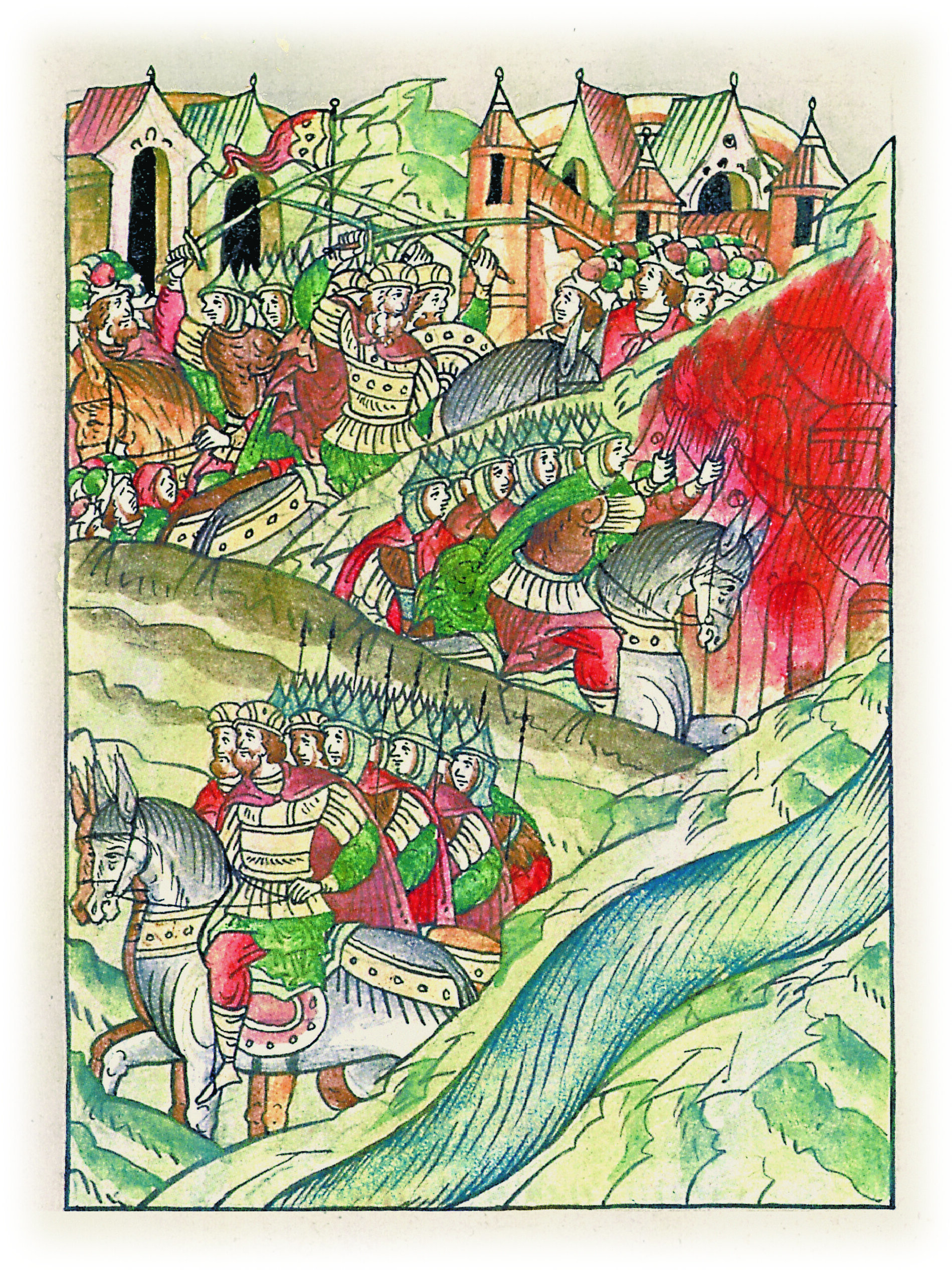 Языки говорят воеводам царя Ивана Васильевича, что магистр окопался большим рвом вокруг города Рындола, бьет из пушек и пищалей и приступает к Рындолу.