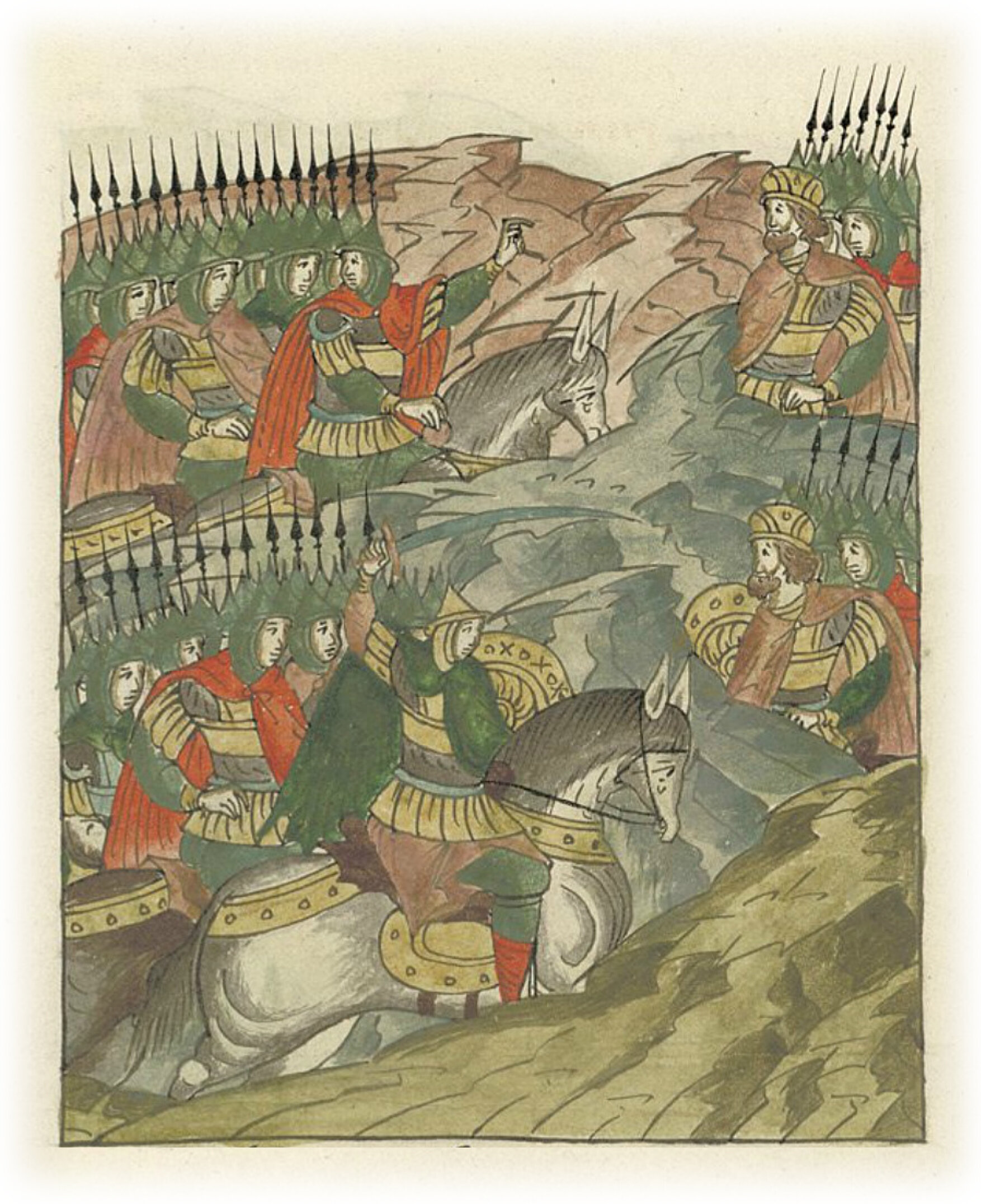 Воеводы царя Ивана Васильевича, разделившись, идут в погоню за царем Емгурчеем.