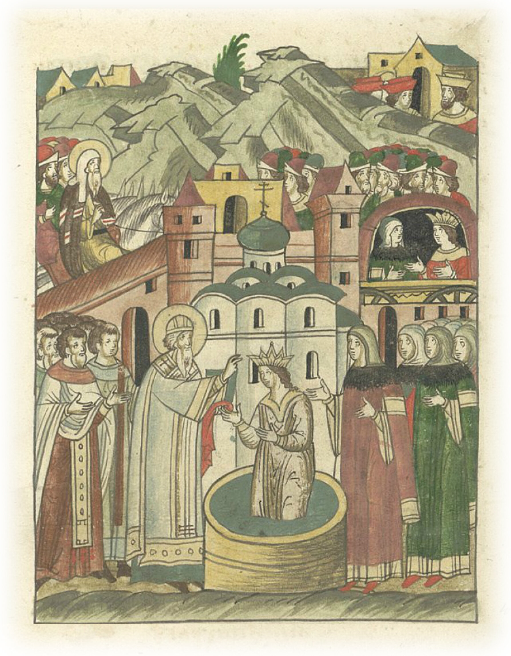 В том же году княгиня Анастасия приехала из Литвы со своей внучкой, дочерью Ольгерда, и крестила ее в Твери. И ради этого крещения преосвященный митрополит Алексий приехал в Тверь.