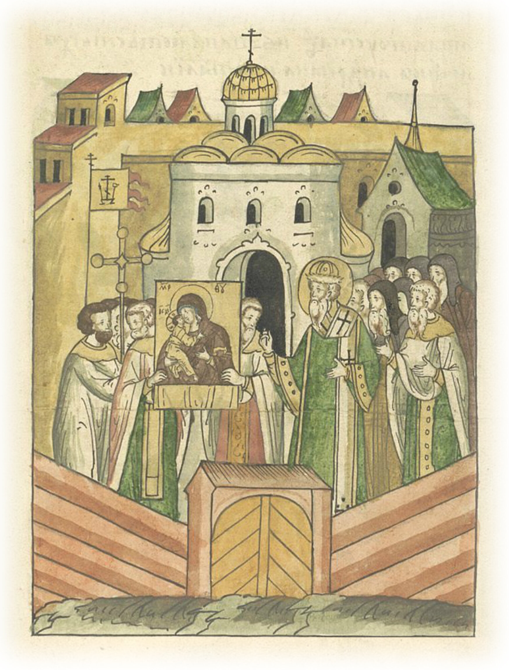 О построении церкви и монастыря на том месте, где встречали чудотворную икону Богоматери. Митрополит всея Руси Киприан освящает церковь Сретения пречистой Богородицы.