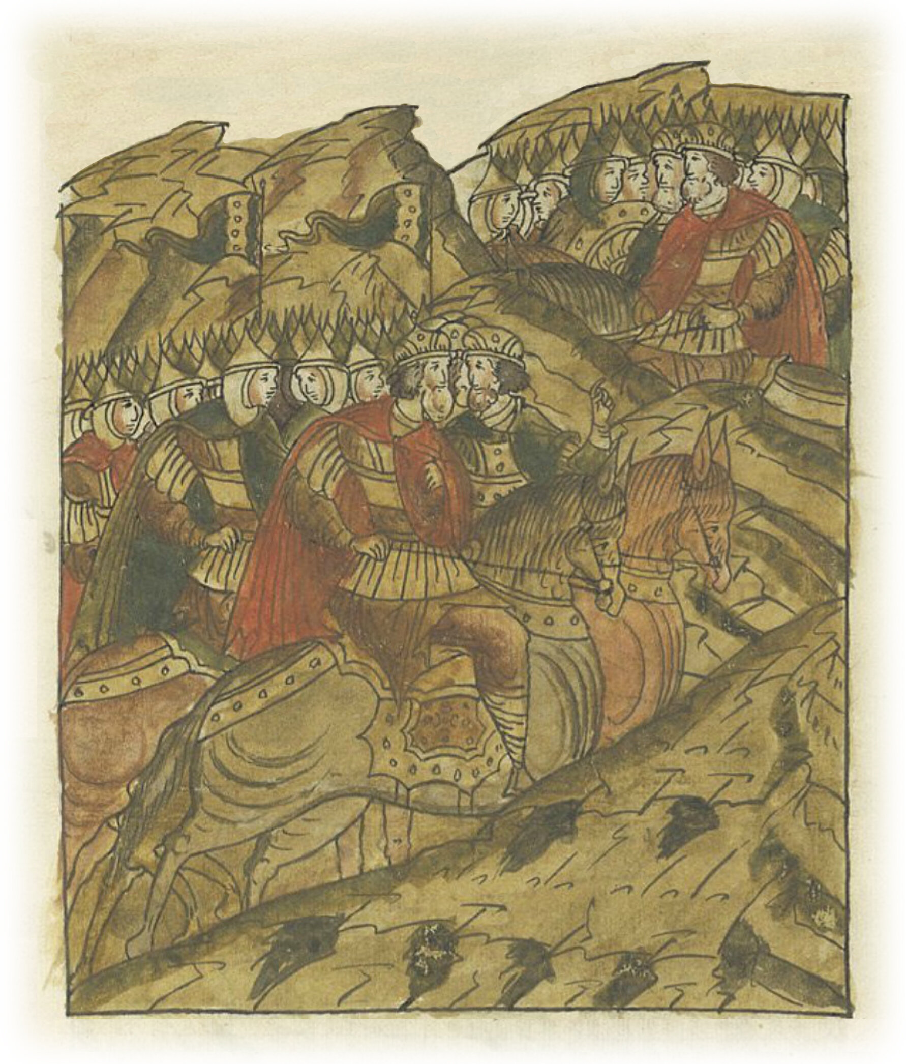 Воеводы царя Ивана Васильевича, разделившись, идут в погоню за царем Емгурчеем.