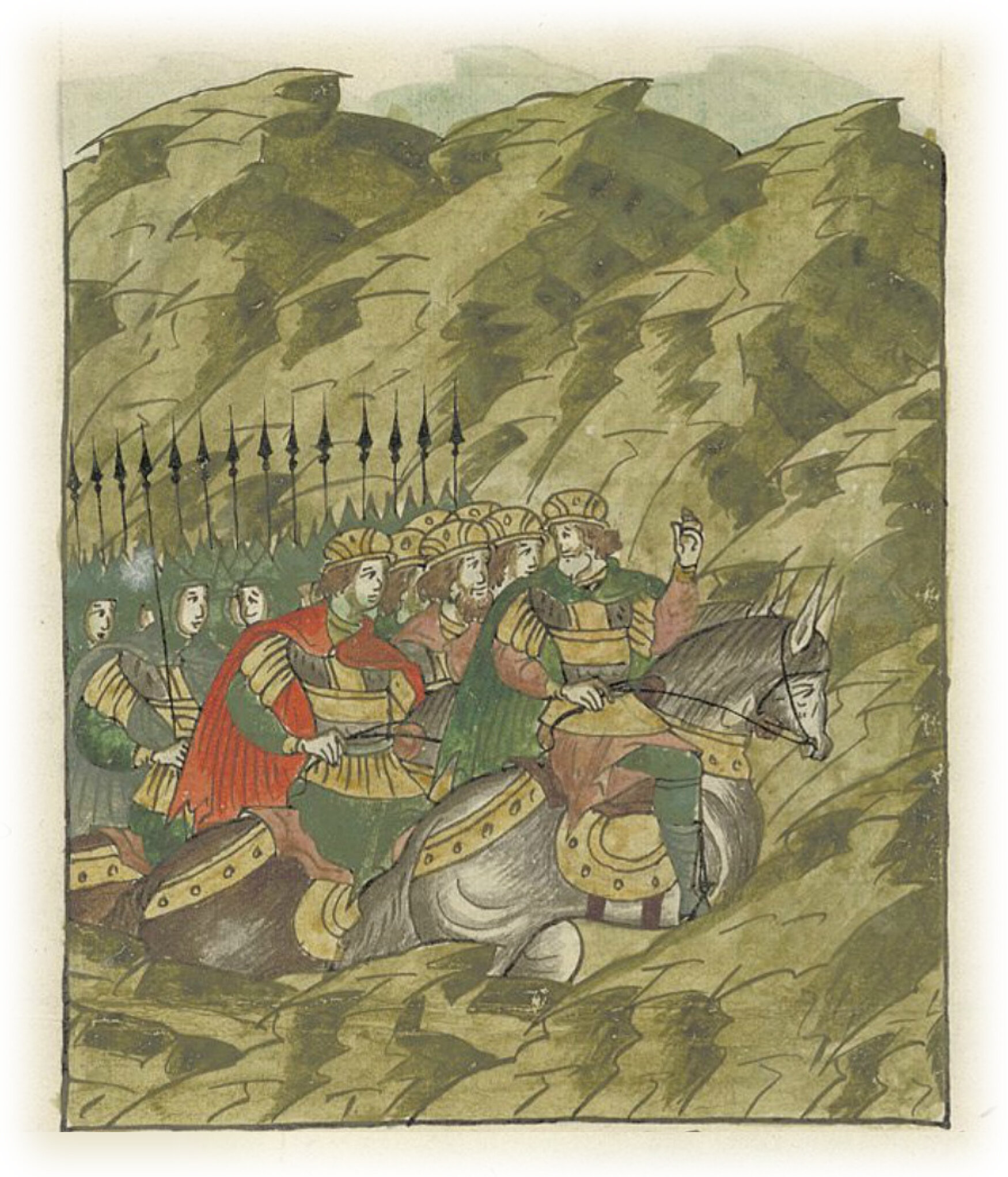 Воеводы царя Ивана Васильевича, разделившись, идут в погоню за царем Емгурчеем.