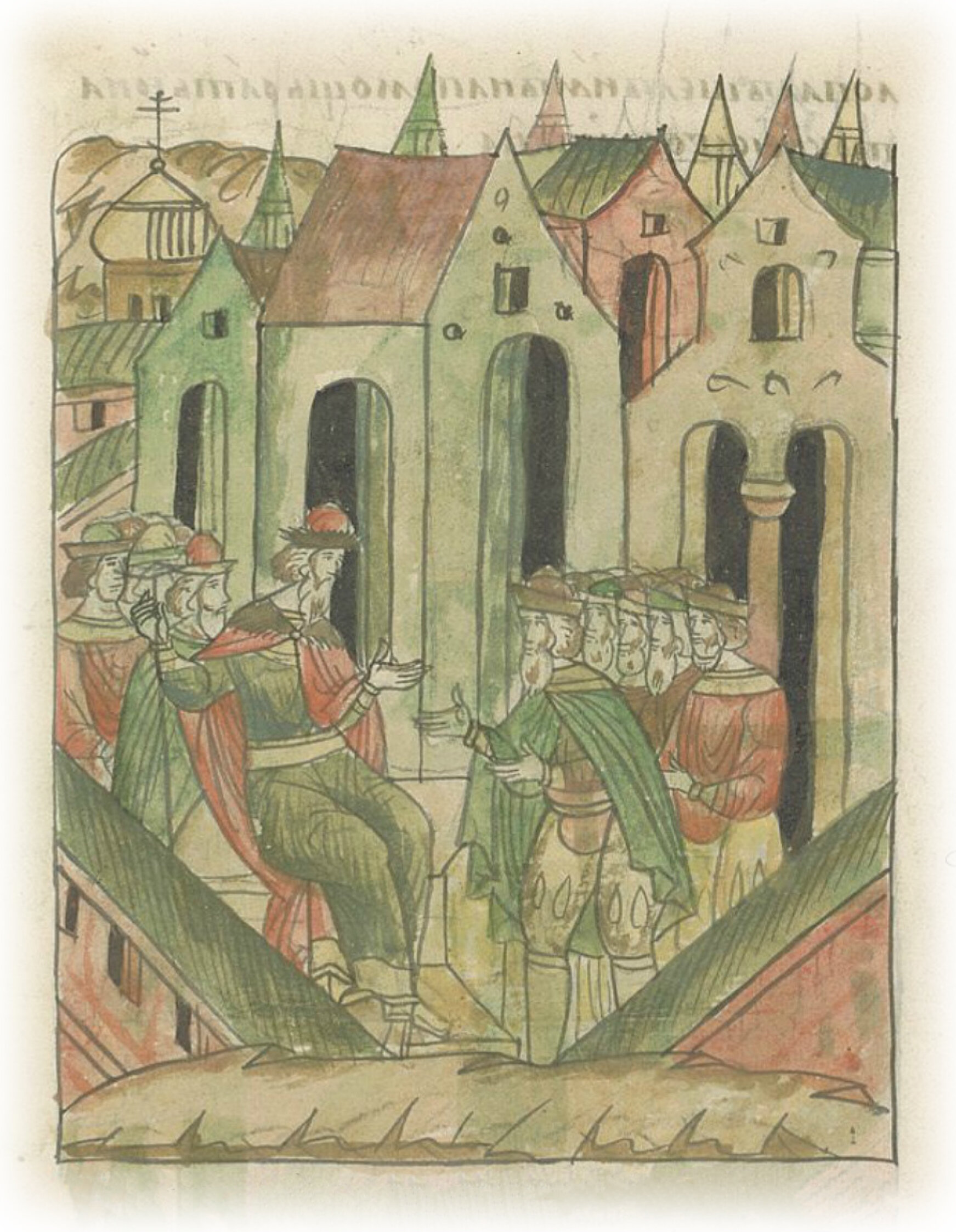 Ругодивские посадники Яким и Захар приезжают в Москву. Воеводы царя Ивана Васильевича Алексей Адашев и Иван Михайлов сообщают им, что государь пожалует их, если сдадут его воеводам помимо Ругодива Вышгород.