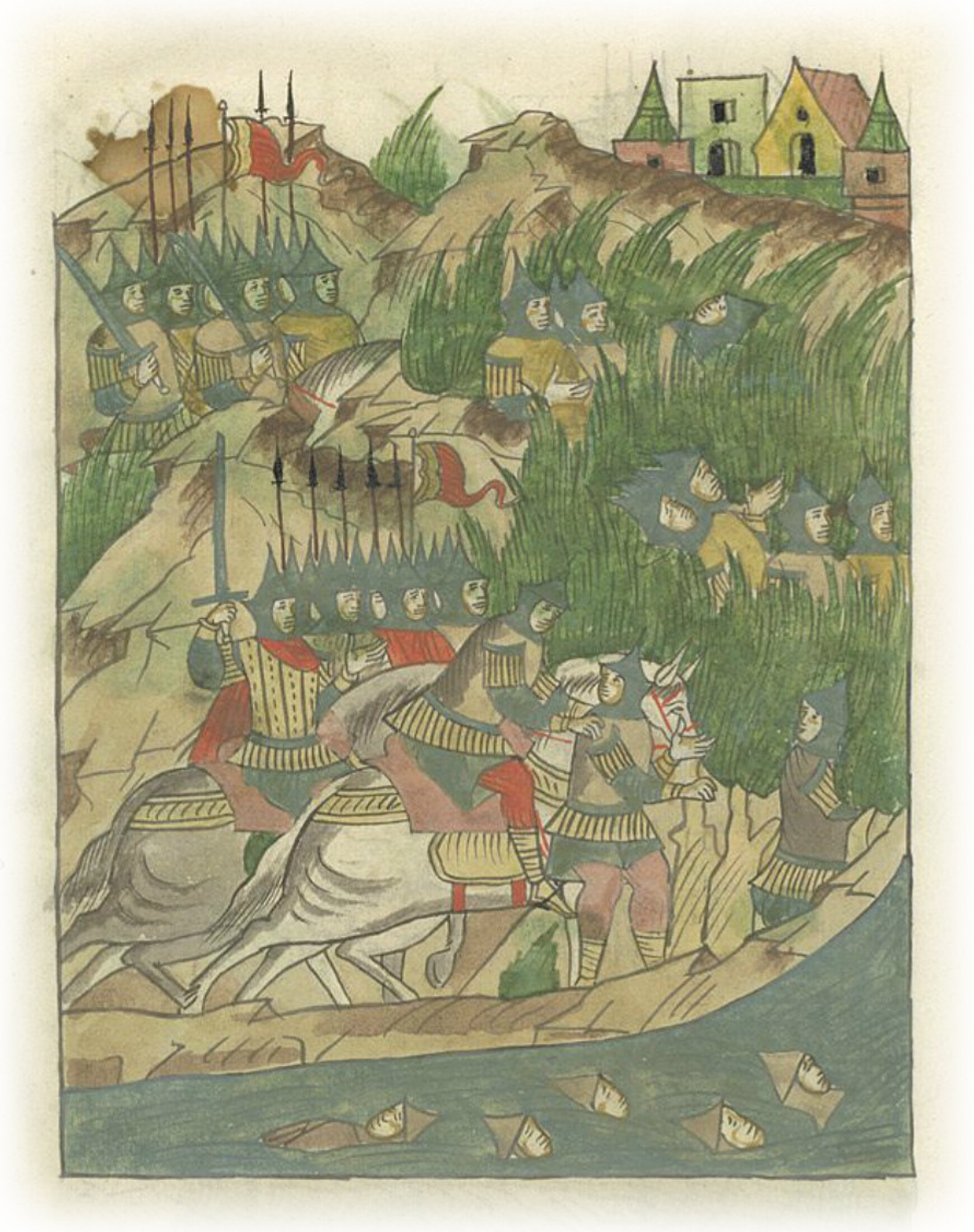 ибо ослепил их Господь, и не узнавали они ни земли своей, ни пути к городу своему, из которого пришли, но блуждали по лесам, не зная, где выходить им из леса; таки ловили их ратники. А иные, раненые бродя по лесам, умирали; а иные в водах тонули.