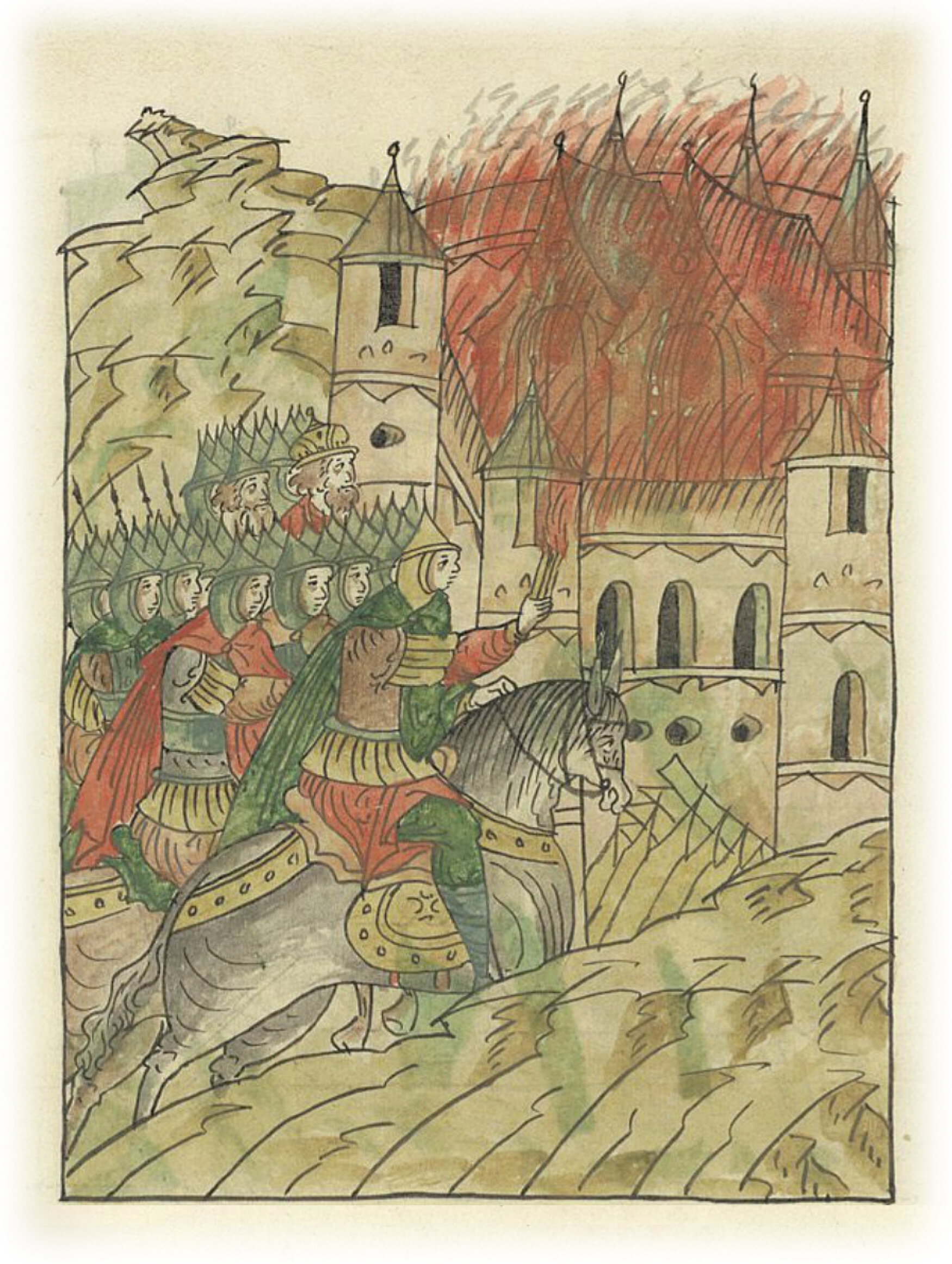 О войне против болгар. Войско Святослава Всеволодовича зажигает город со всех сторон.