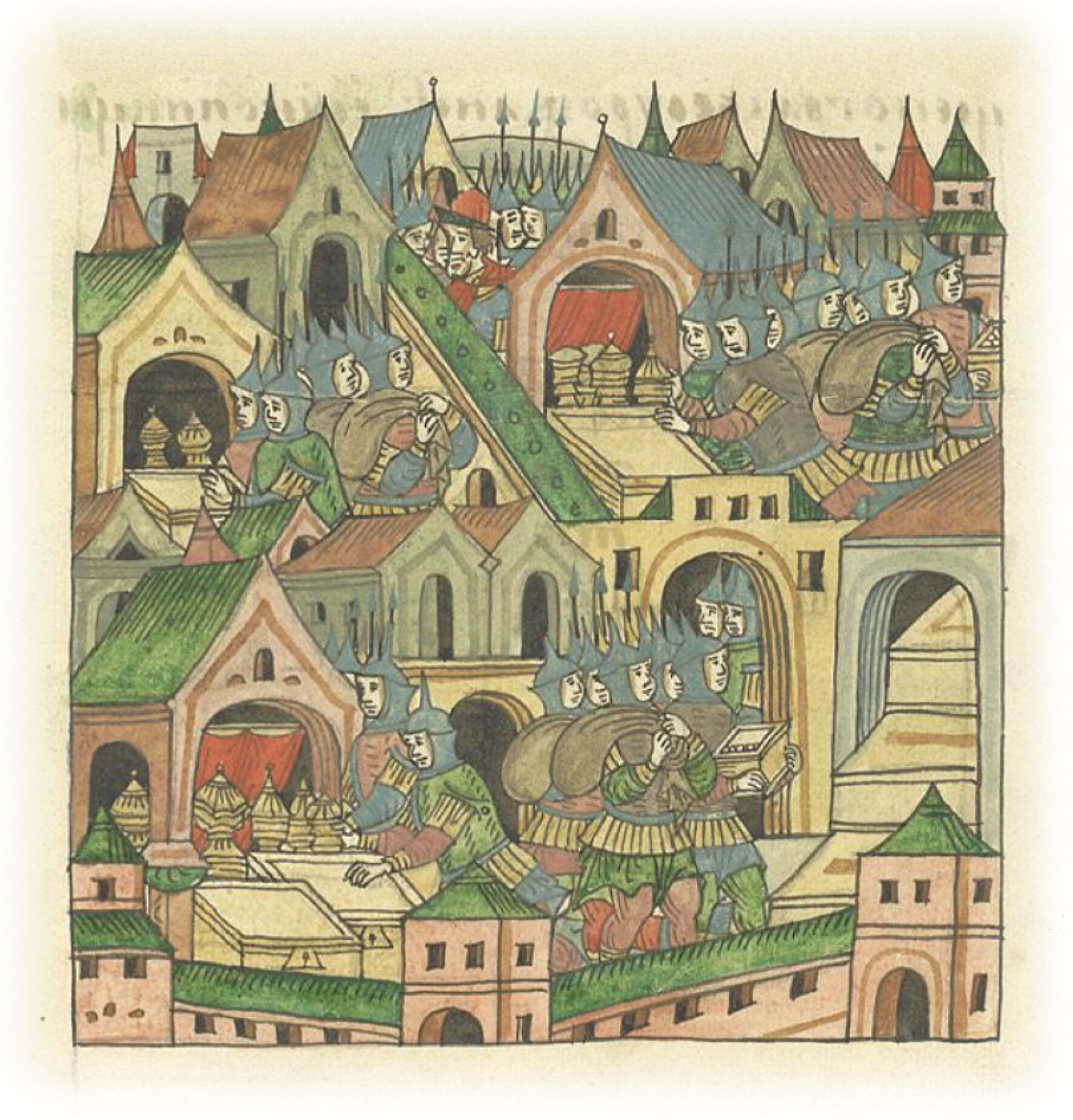 Что же можно сказать о казне великого князя? Многие сокровища вскоре истощились, и многохвальное богатство и богатое имение быстро разошлись. Что же случилось с казной многих прочих старейших бояр, за долгое время собираемой и в благоденстве пополняемой в хранилищах, полных богатства многоценного и имения неисчислимого, – и то все взяли на расхищение нечестивые. И еще другие были в городе купцы-сурожане, суконники, чьи дома были наполнены богатством и всяким товаром, – и то все расхитили.