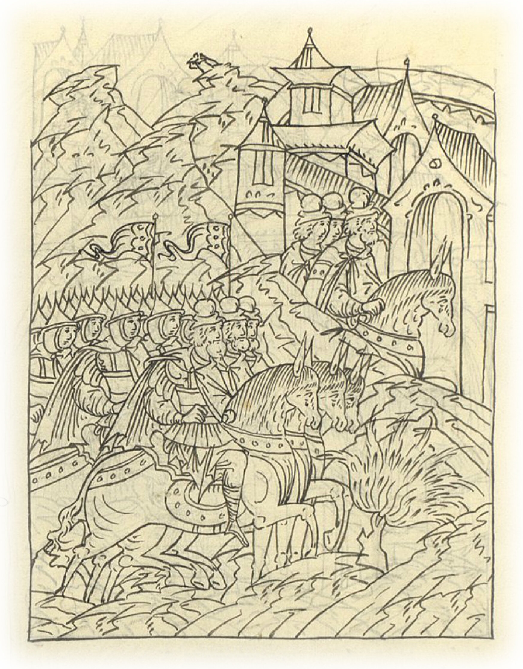 Ислам-князь, Кебяк-князь и Алекей-мурза едут в город впереди воевод.