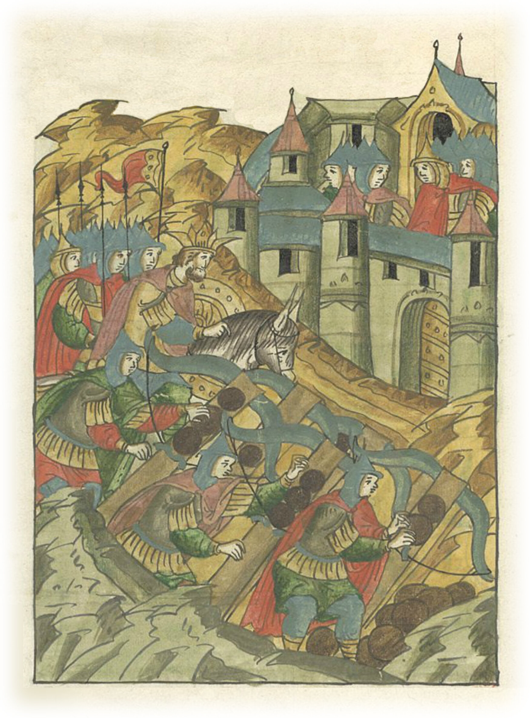Языки говорят воеводам царя Ивана Васильевича, что магистр окопался большим рвом вокруг города Рындола, бьет из пушек и пищалей и приступает к Рындолу.