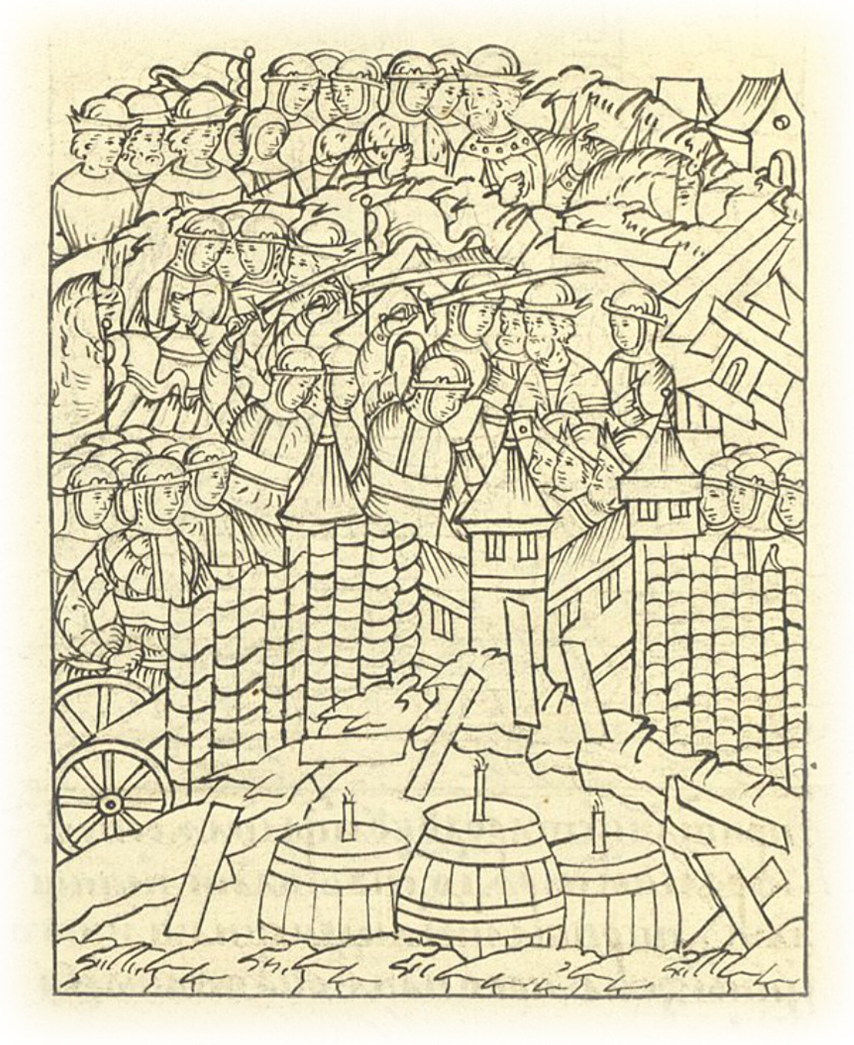 Языки говорят воеводам царя Ивана Васильевича, что магистр окопался большим рвом вокруг города Рындола, бьет из пушек и пищалей и приступает к Рындолу.