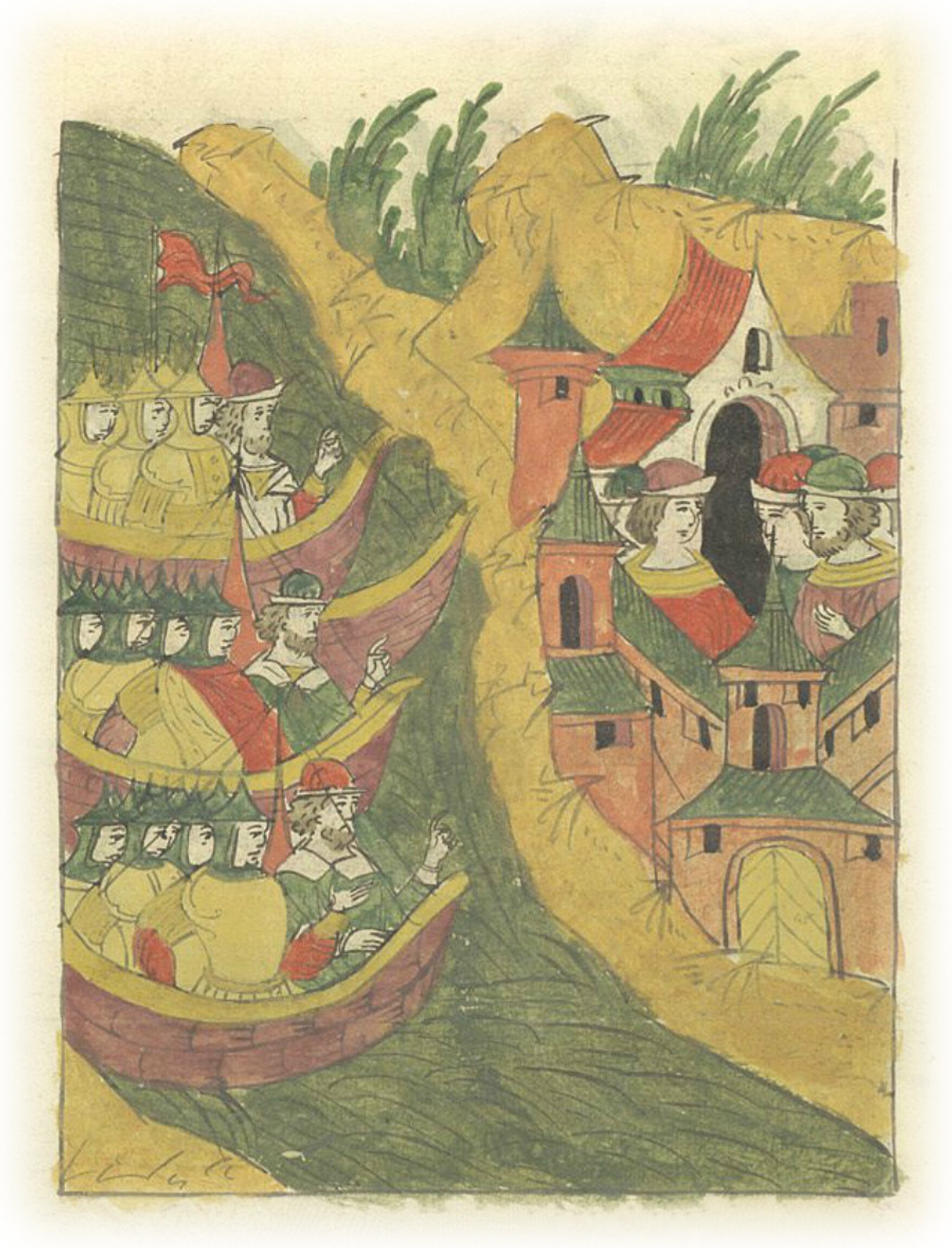 И пришли к городу в июле во второй день; а в городе в то время было людей немного. И воеводы пристали выше города и ниже.