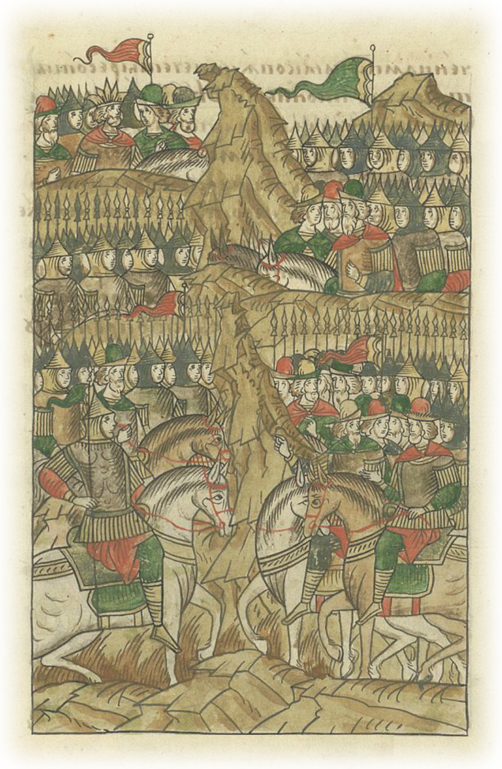 И так пошли обе силы в (одно) место сходиться, оттуда – татарская сила великая, а отсюда – сам князь великий Дмитрий Иванович со всеми князьями русскими. И было (можно) видеть русскую силу несказанно многую, больше четырехсот тысяч и конной, и пешей рати. Также и татарская сила (была) многочисленная очень. И уж близко друг к другу были сходящиеся обе силы, тогда выехал из полка татарского богатырь великий очень, и широту имеющий, и мужество великое проявлял. И был всем страшен очень, и никто не смел против него выйти, и говорили каждый друг другу, чтобы кто-нибудь против него вышел, и не шел никто.