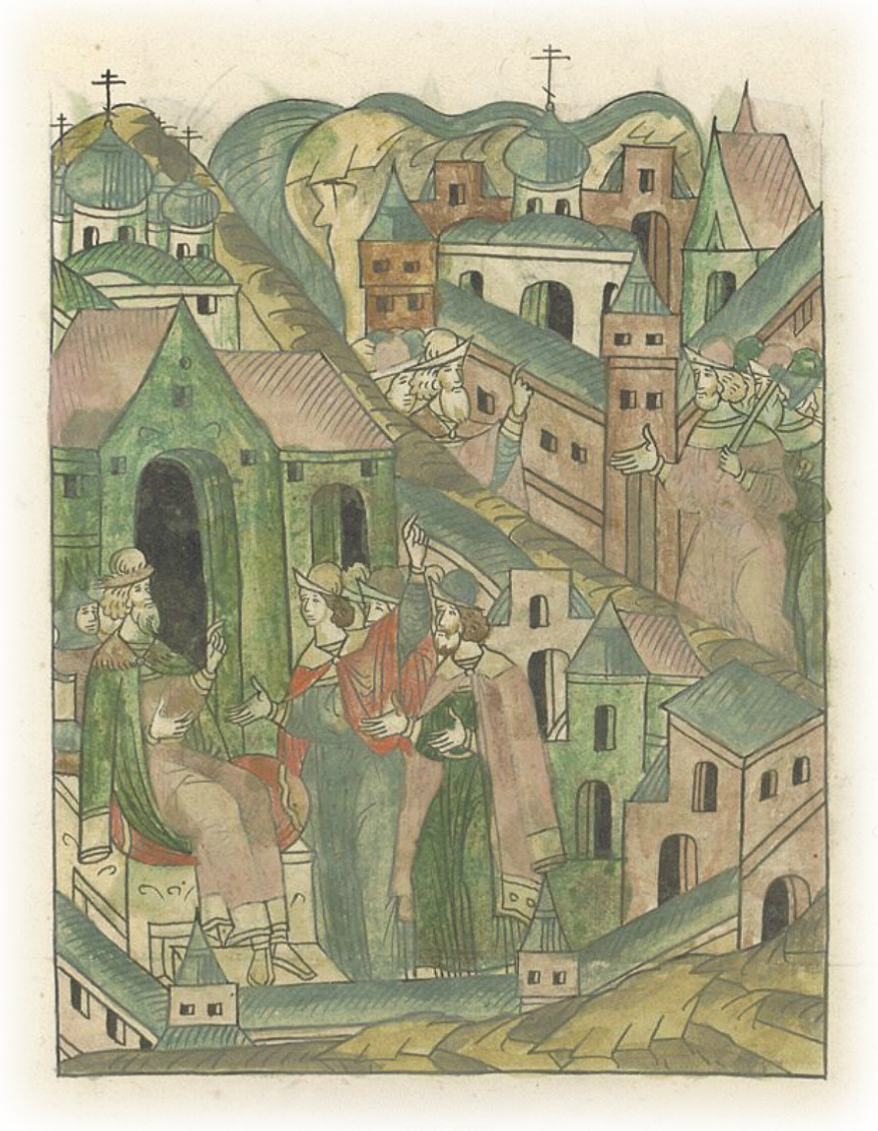 Ругодивские посадники Яким и Захар приезжают в Москву. Воеводы царя Ивана Васильевича Алексей Адашев и Иван Михайлов сообщают им, что государь пожалует их, если сдадут его воеводам помимо Ругодива Вышгород.