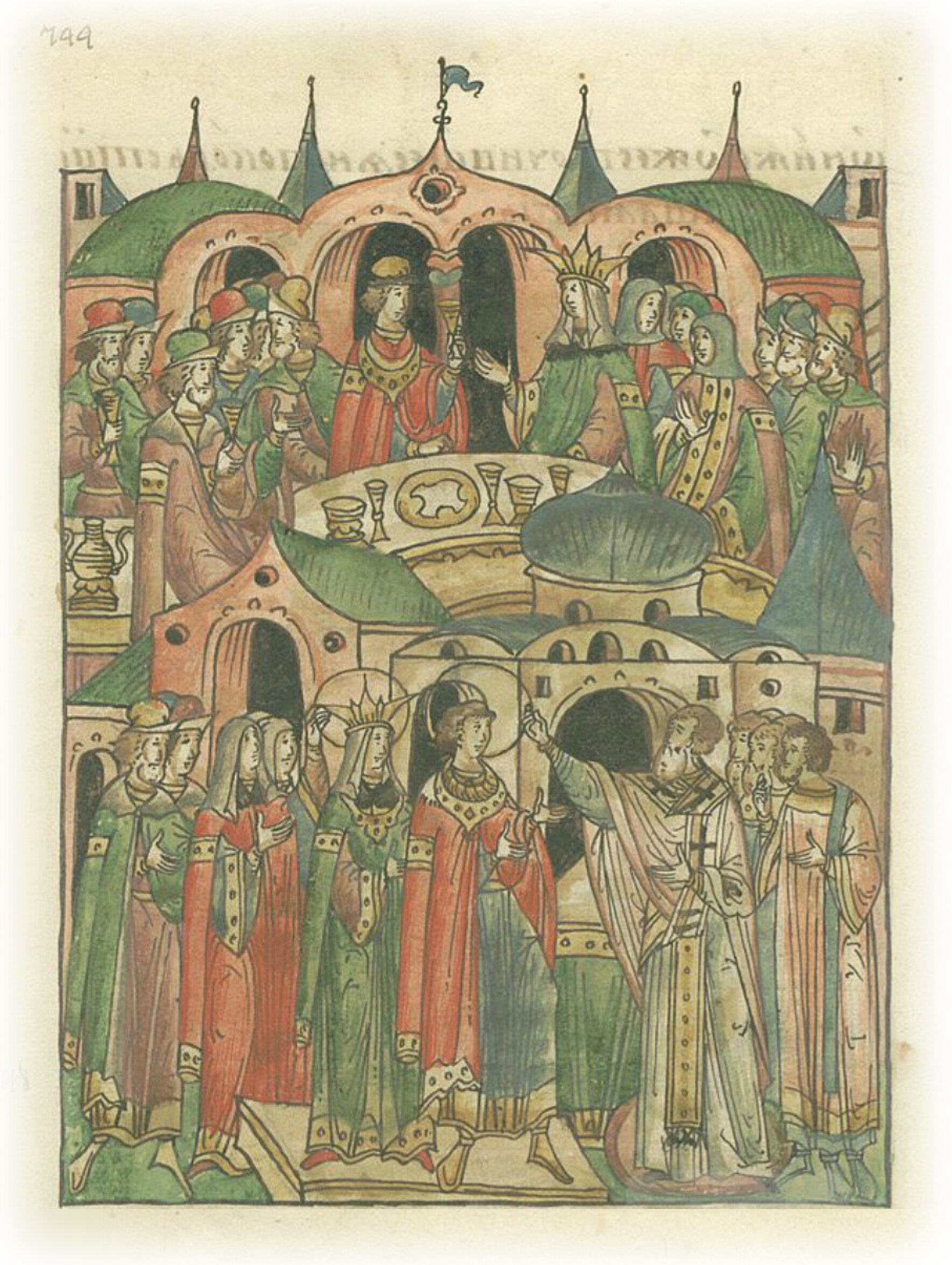Женитьба князя Юрия Всеволодовича Холмского и венчание в Твери в церкви великого Спаса владыкой Арсением.