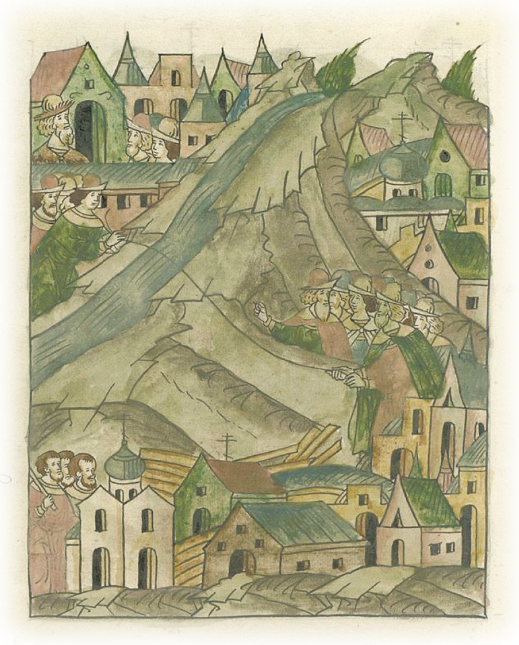 Языки говорят воеводам царя Ивана Васильевича, что магистр окопался большим рвом вокруг города Рындола, бьет из пушек и пищалей и приступает к Рындолу.