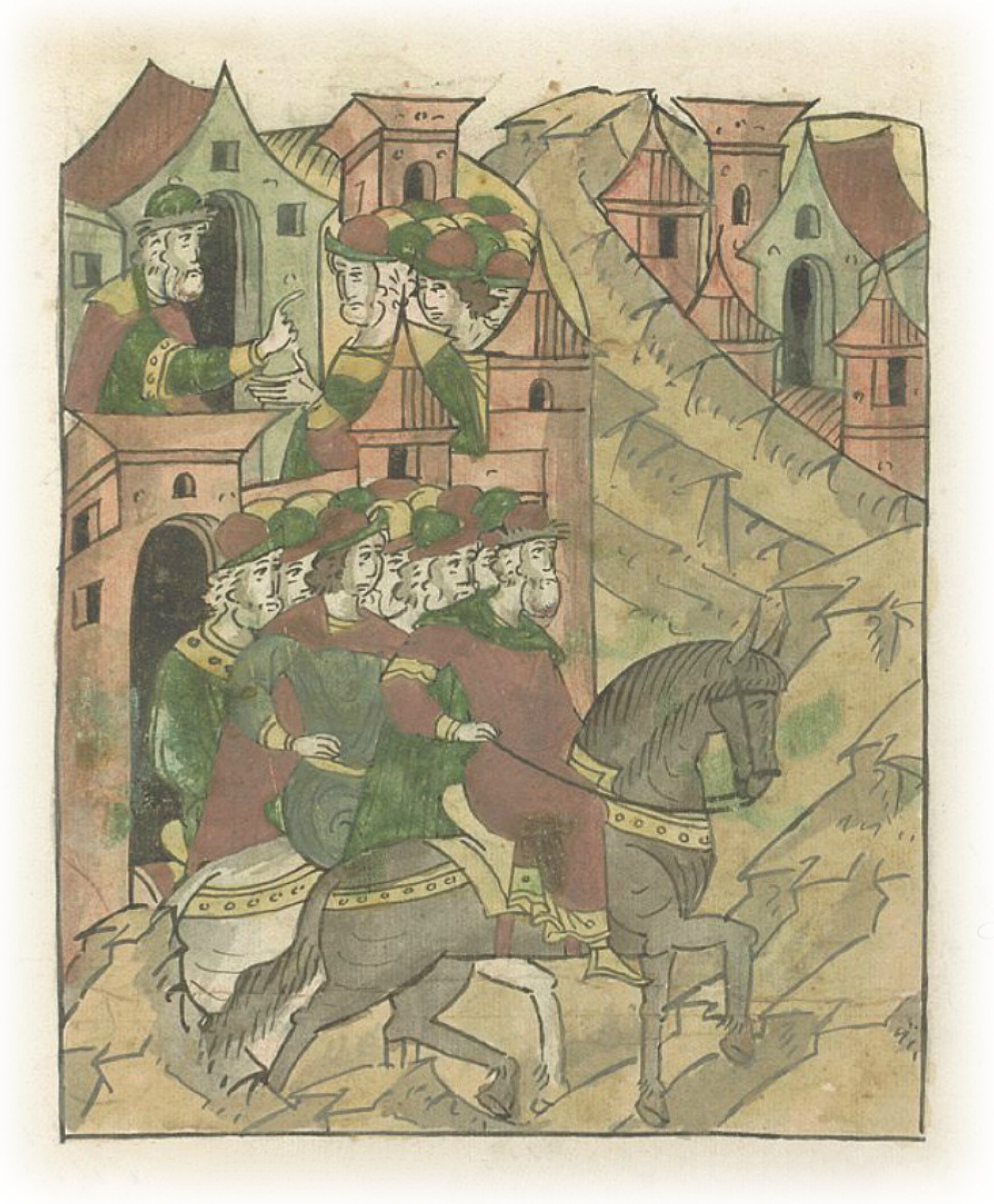 Ругодивские посадники Яким и Захар приезжают в Москву. Воеводы царя Ивана Васильевича Алексей Адашев и Иван Михайлов сообщают им, что государь пожалует их, если сдадут его воеводам помимо Ругодива Вышгород.
