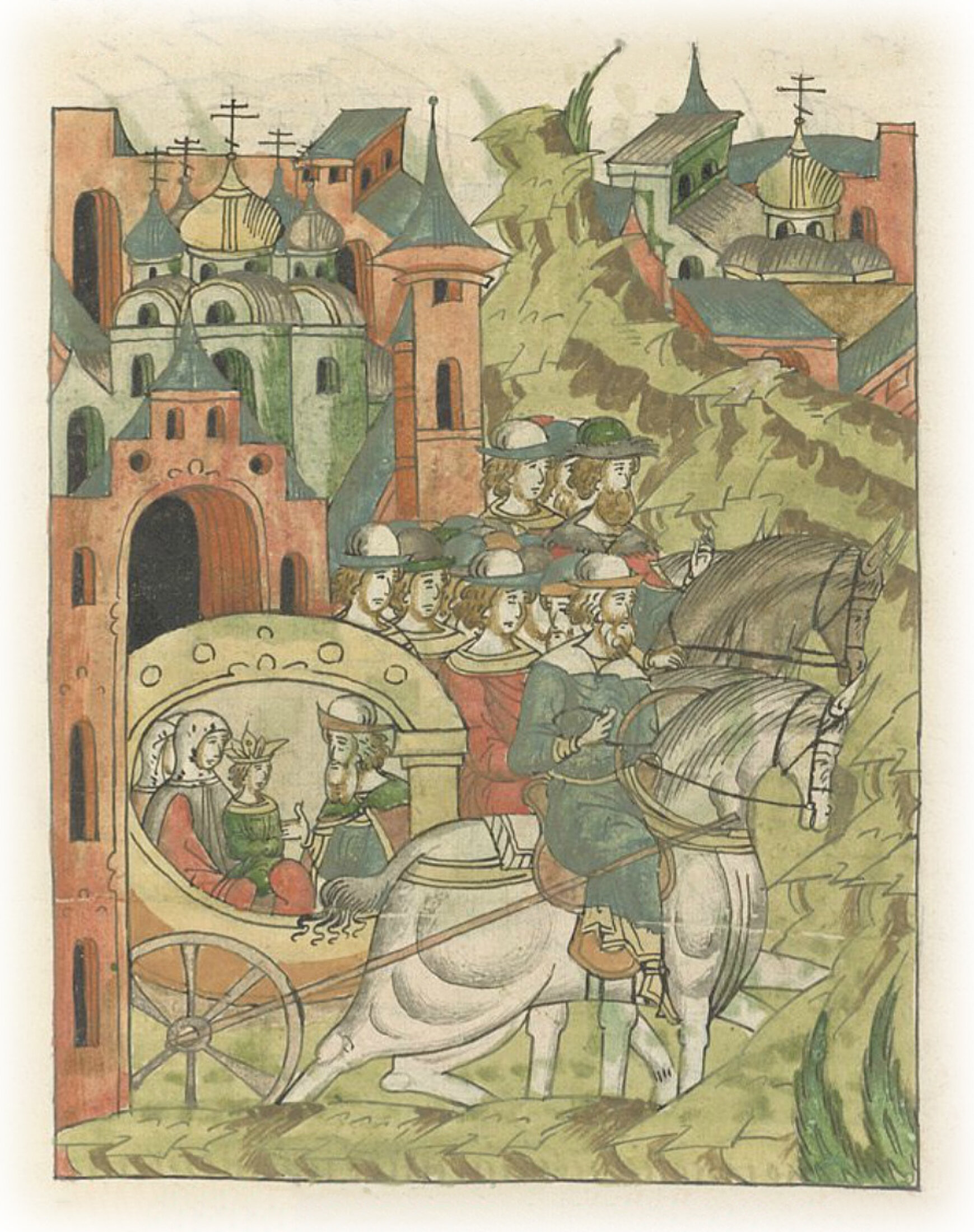 О крещении царского отрока. Когда же пришло время этому царскому ребенку во второй раз родиться водою и духом*, тогда сам христолюбивый отец его самодержец Василий подвигся со многой радостью шествовать с ним в преименитую обитель великого светильника Сергия чудотворца, живоначальную Троицу. * совершить обряд крещения.