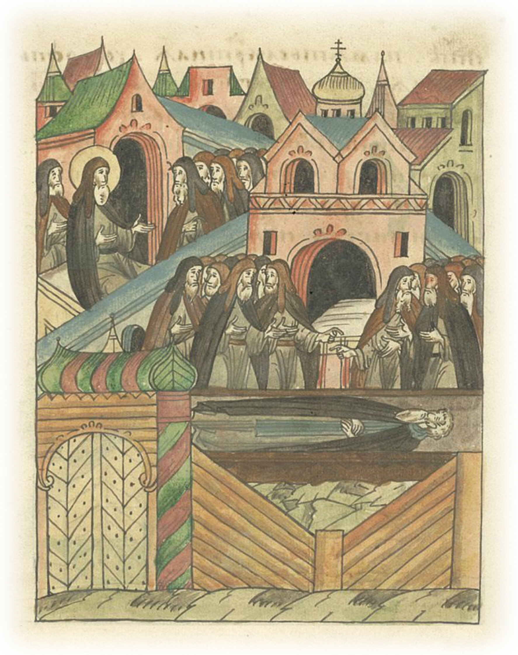 Кончина инока Исаака молчальника у преподобного игумена Сергия Радожнеского.