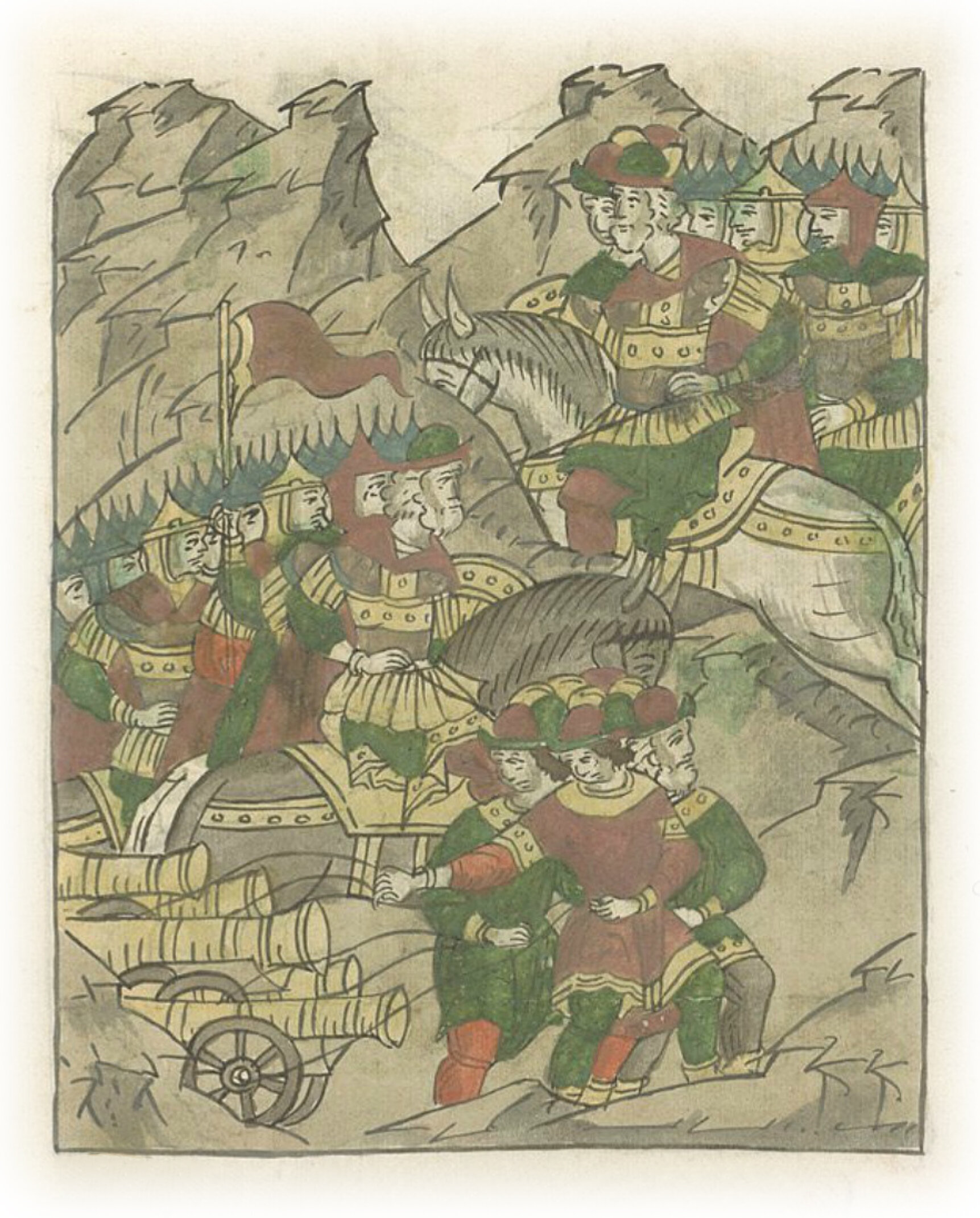 Воеводы царя Ивана Васильевича, разделившись, идут в погоню за царем Емгурчеем.