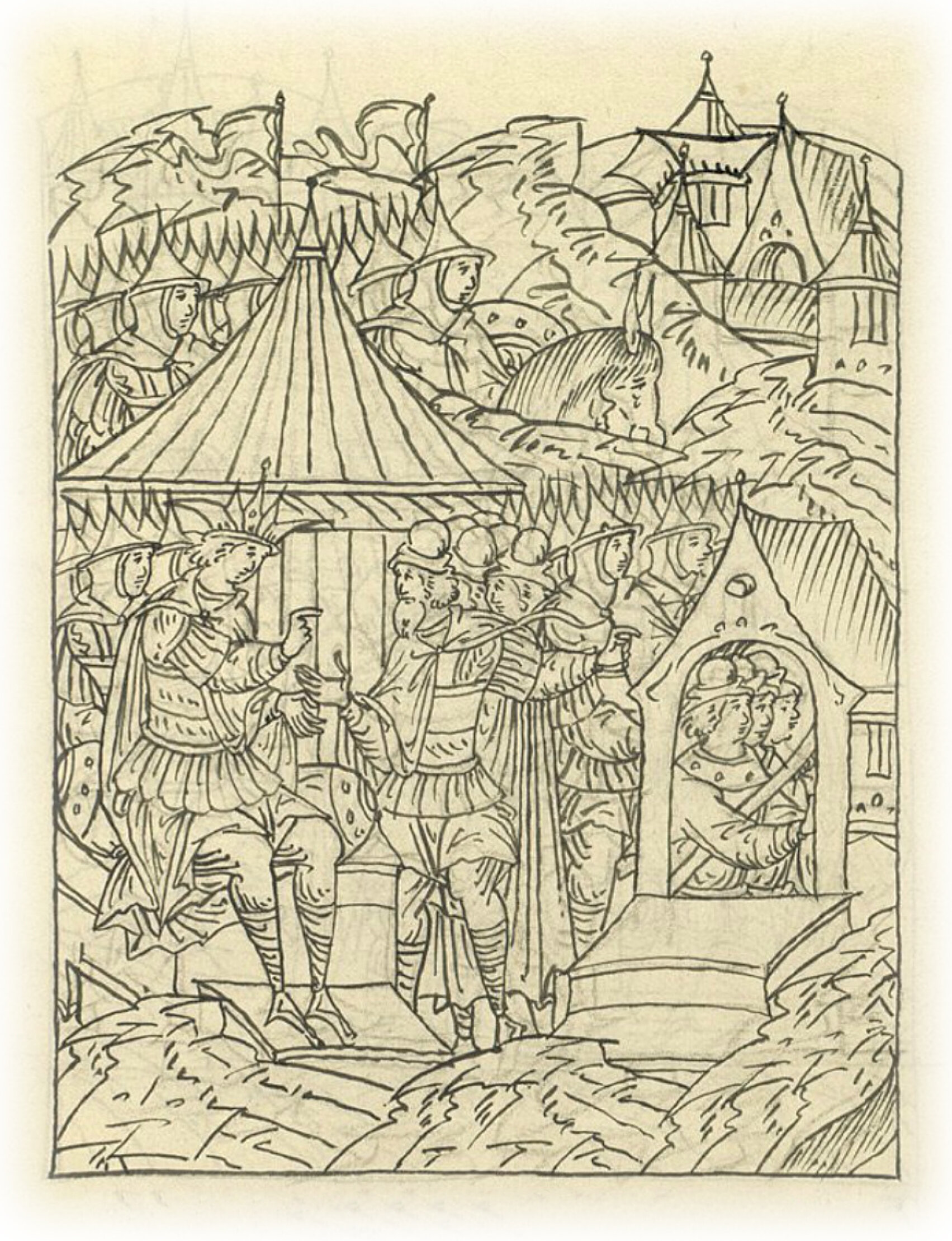 Языки говорят воеводам царя Ивана Васильевича, что магистр окопался большим рвом вокруг города Рындола, бьет из пушек и пищалей и приступает к Рындолу.