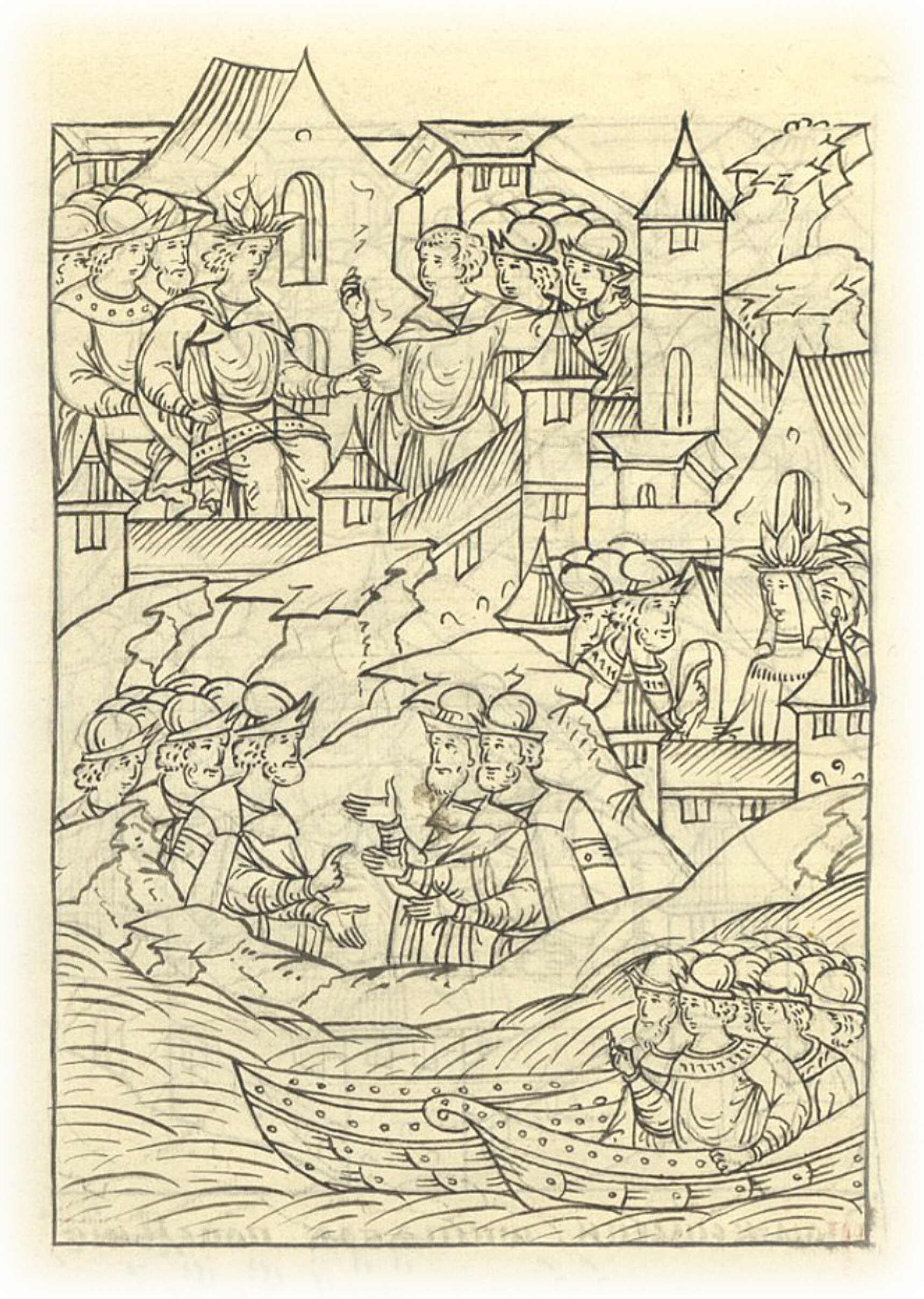 Ругодивские посадники Яким и Захар приезжают в Москву. Воеводы царя Ивана Васильевича Алексей Адашев и Иван Михайлов сообщают им, что государь пожалует их, если сдадут его воеводам помимо Ругодива Вышгород.