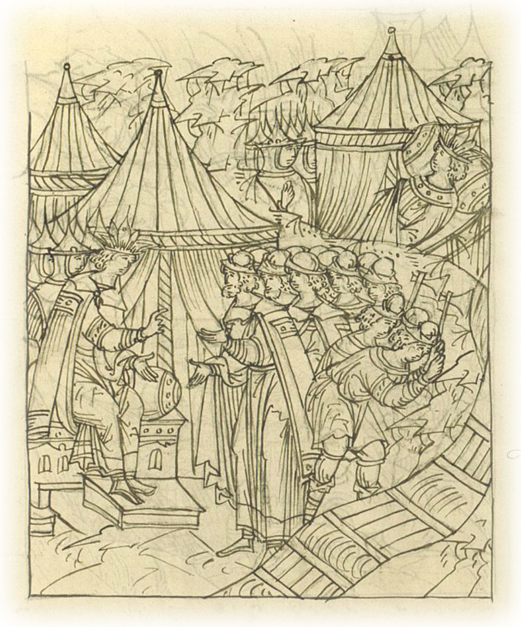 Ругодивские посадники Яким и Захар приезжают в Москву. Воеводы царя Ивана Васильевича Алексей Адашев и Иван Михайлов сообщают им, что государь пожалует их, если сдадут его воеводам помимо Ругодива Вышгород.