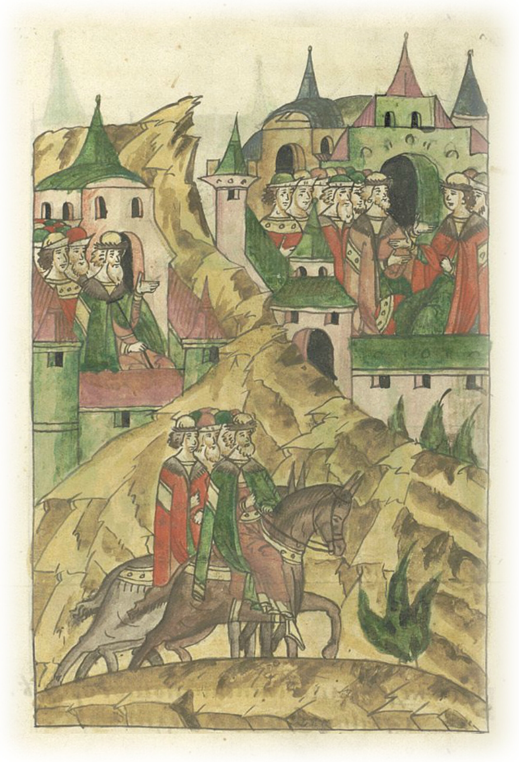 Ругодивские посадники Яким и Захар приезжают в Москву. Воеводы царя Ивана Васильевича Алексей Адашев и Иван Михайлов сообщают им, что государь пожалует их, если сдадут его воеводам помимо Ругодива Вышгород.