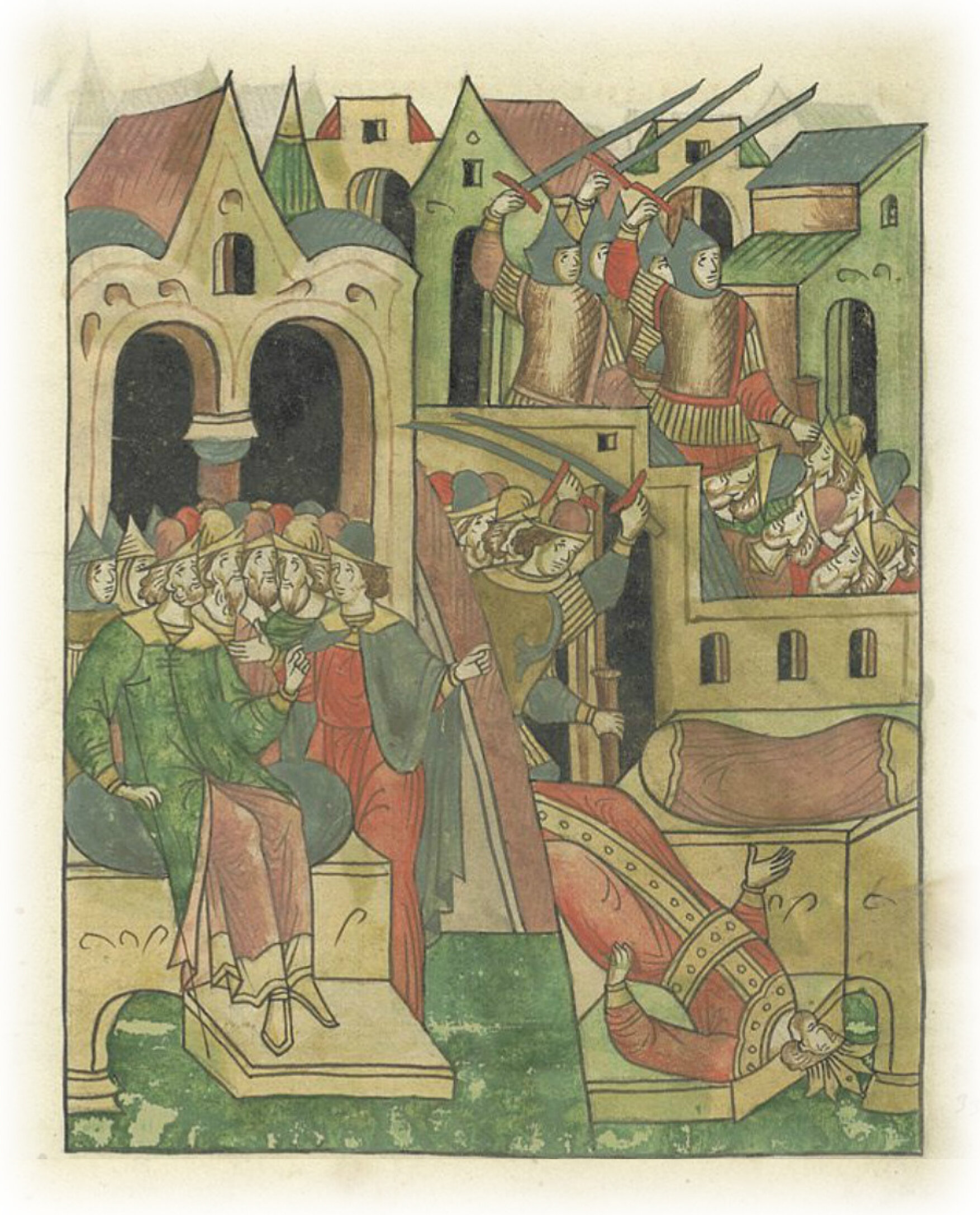 Тогда же и самого царя своего убил, которого только по названию имел в Орде своей царем, а сам же всем владел и все творил. И увидев, что любят татары царя своего, и убоялся, что вдруг отнимет у него власть его и волю его, и того ради убил его, и всех верных его и любящих его.