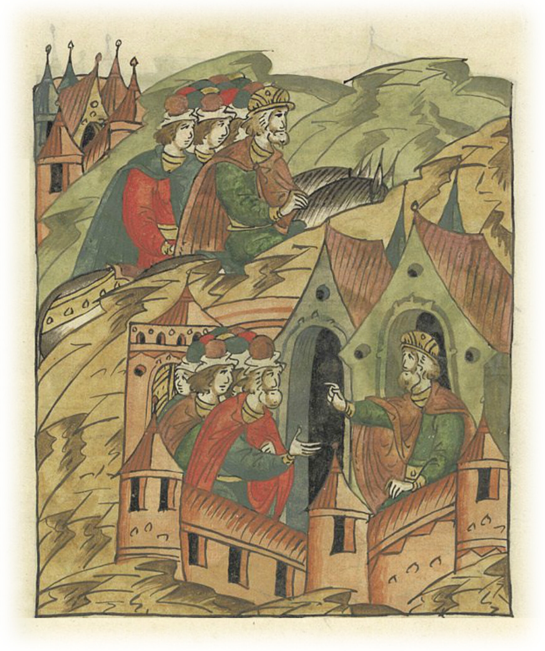 Ругодивские посадники Яким и Захар приезжают в Москву. Воеводы царя Ивана Васильевича Алексей Адашев и Иван Михайлов сообщают им, что государь пожалует их, если сдадут его воеводам помимо Ругодива Вышгород.