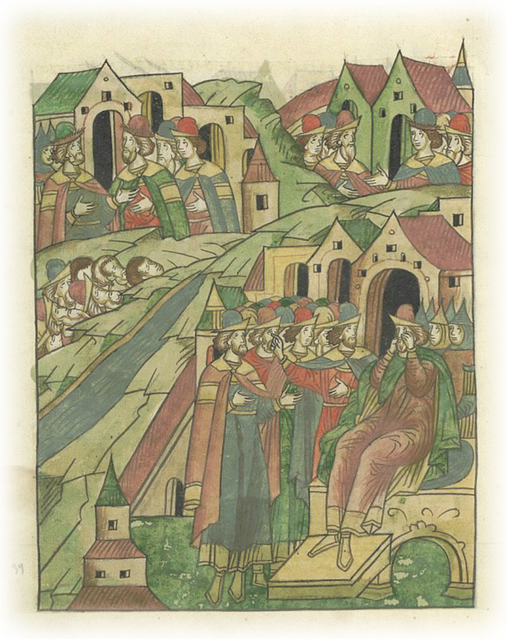 Ругодивские посадники Яким и Захар приезжают в Москву. Воеводы царя Ивана Васильевича Алексей Адашев и Иван Михайлов сообщают им, что государь пожалует их, если сдадут его воеводам помимо Ругодива Вышгород.