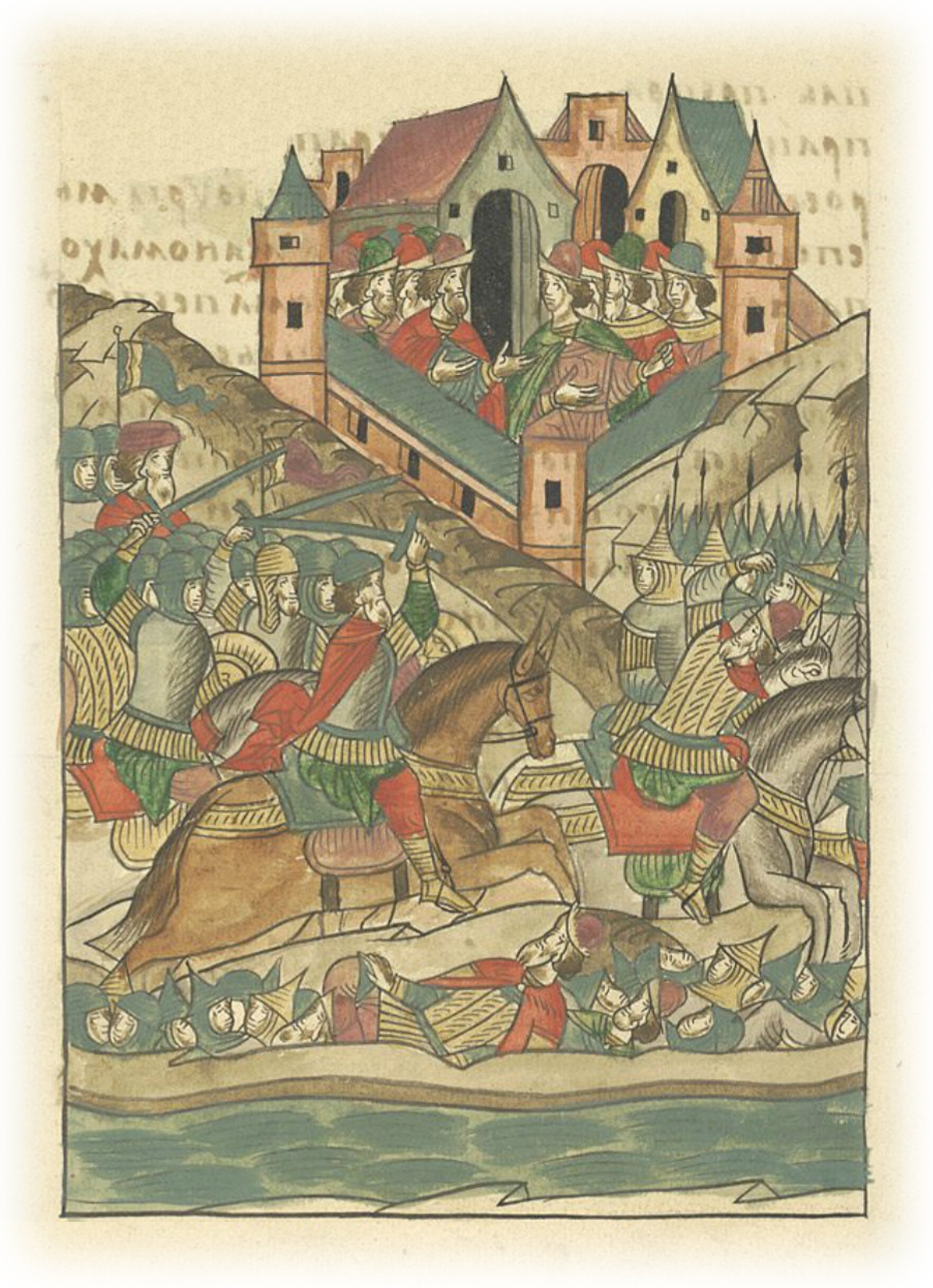 Языки говорят воеводам царя Ивана Васильевича, что магистр окопался большим рвом вокруг города Рындола, бьет из пушек и пищалей и приступает к Рындолу.