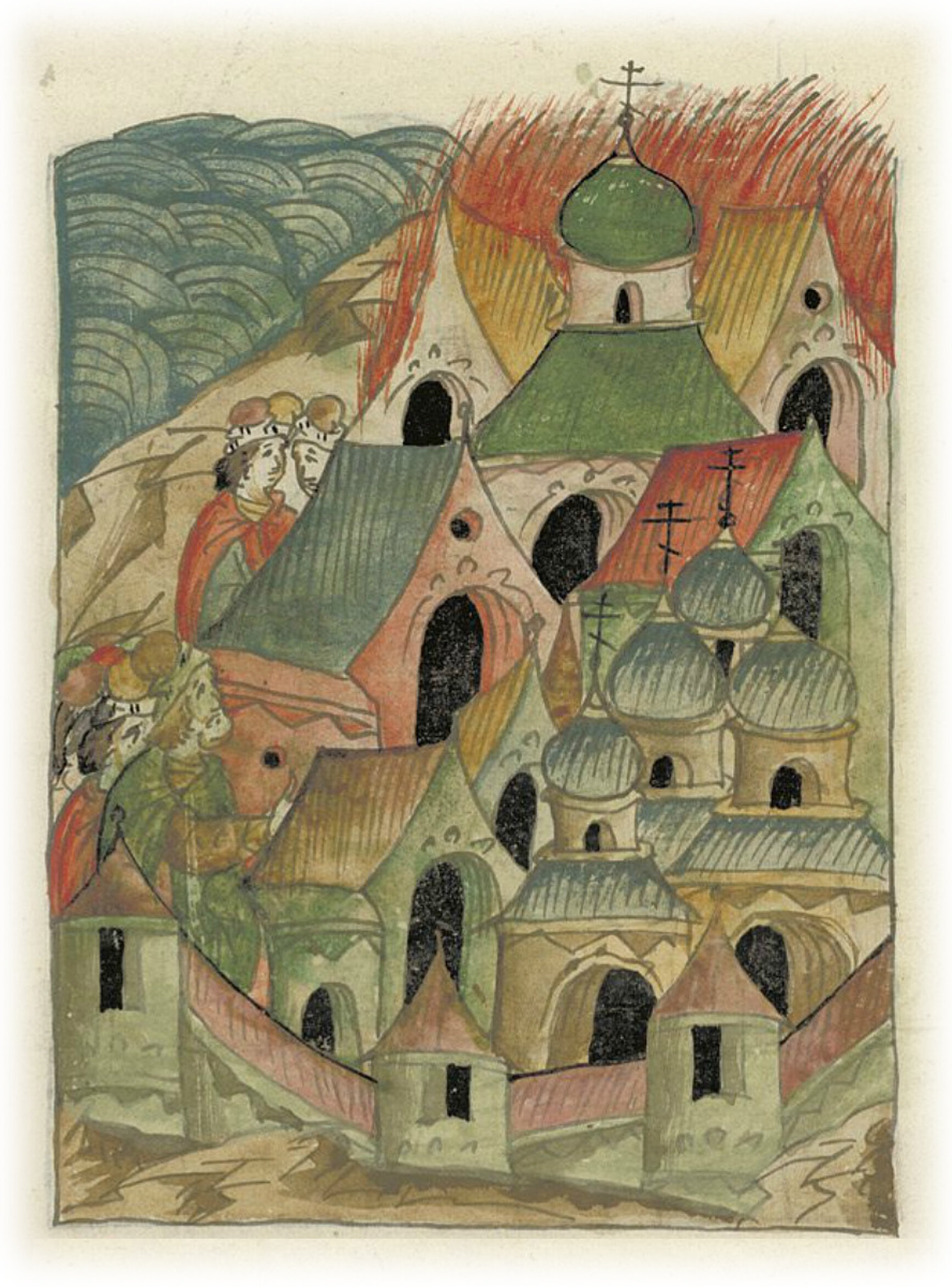 И сожжен был весь город, и церкви неописуемой красотой украшенные, не можем их числа назвать, и святой Софии притвор сгорел, где все патриархи перечислены, и ипподром, и все строения, находящиеся до моря и до двора царя, и до Суда сгорели.