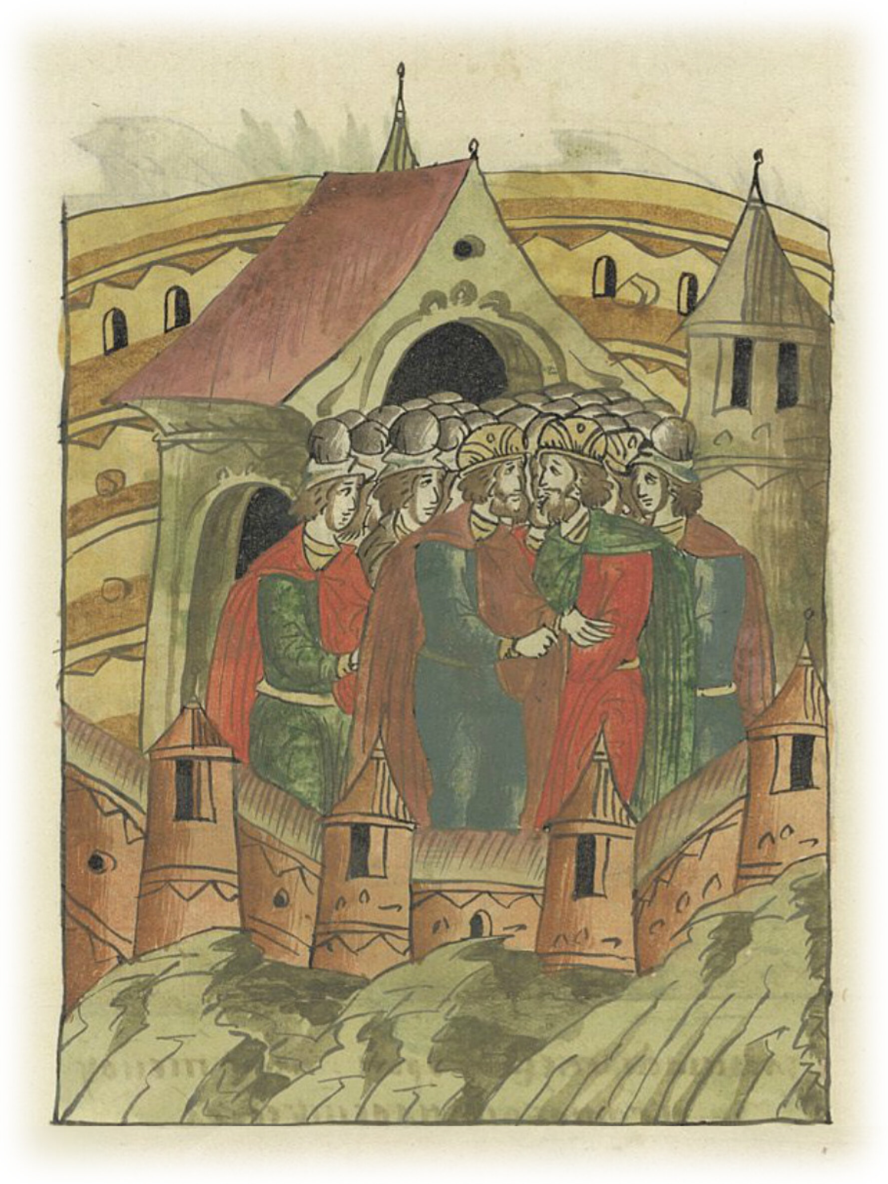 целовались с любовию великою и пошли в город. И была радость великая во Владимире о приходе Святослава.
